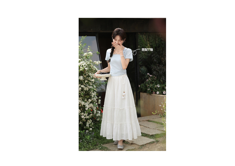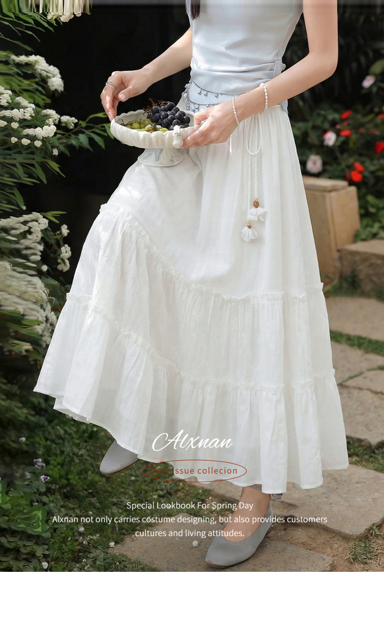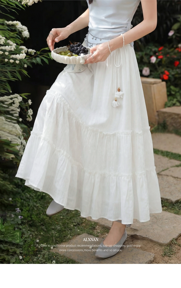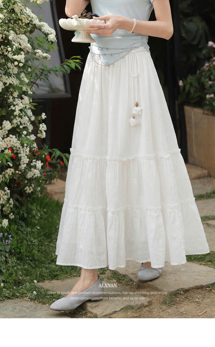 鹿向南「素纱映蕾」米白色A字半身裙女春季新款蛋糕裙显瘦长裙子