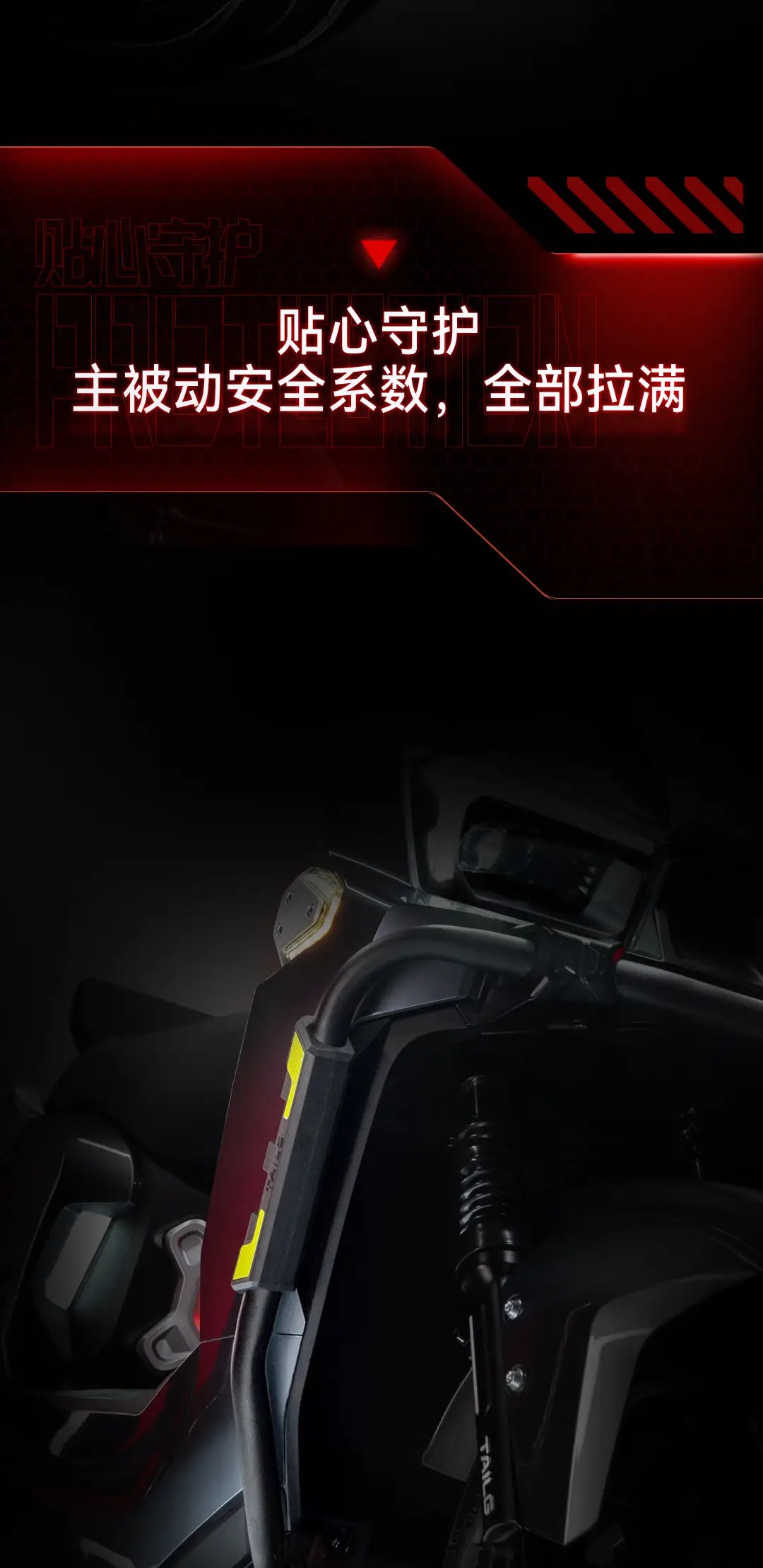 照明系统:65000cd火眼激光大灯、硬派纵置战术尾灯