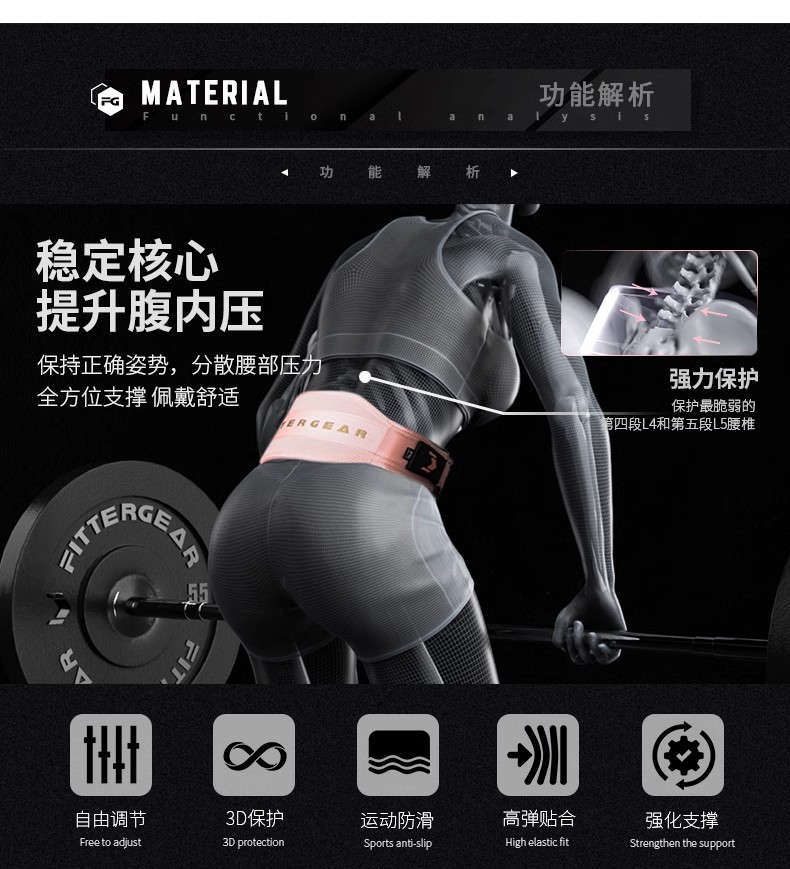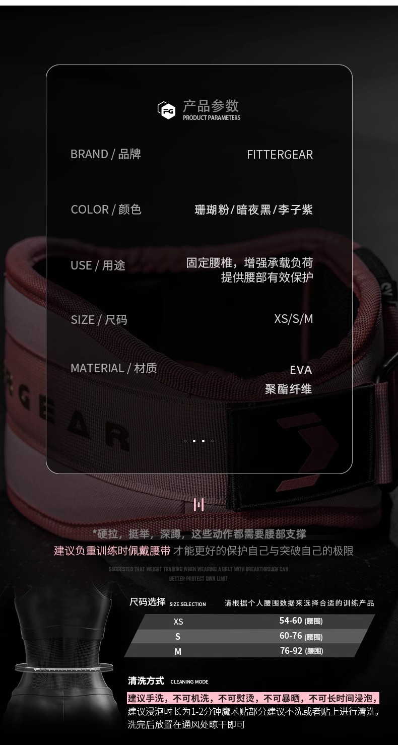 【执炼FitterGear】专业健身运动女防卡腰深蹲硬拉训练护腰带负重器械护具FGPPKK