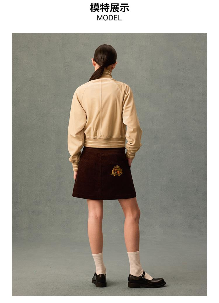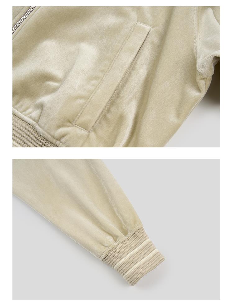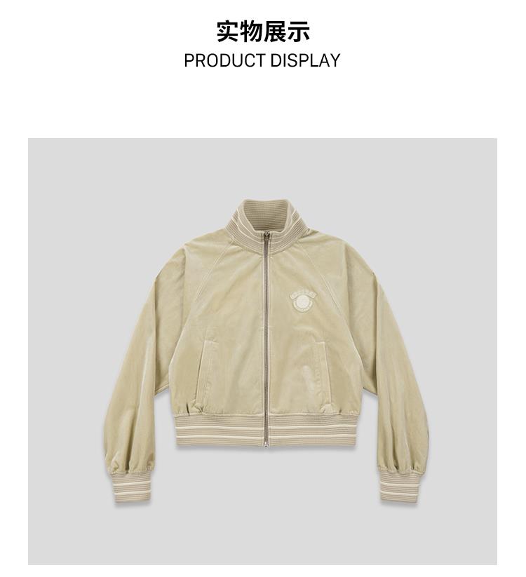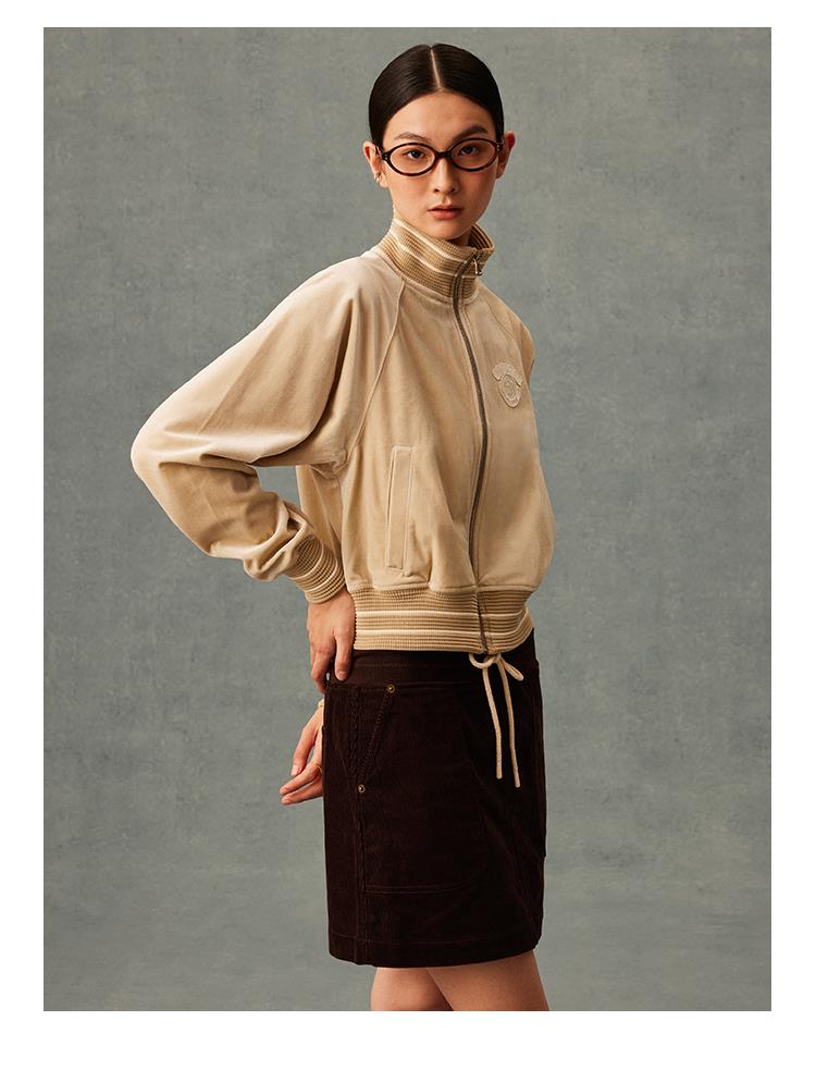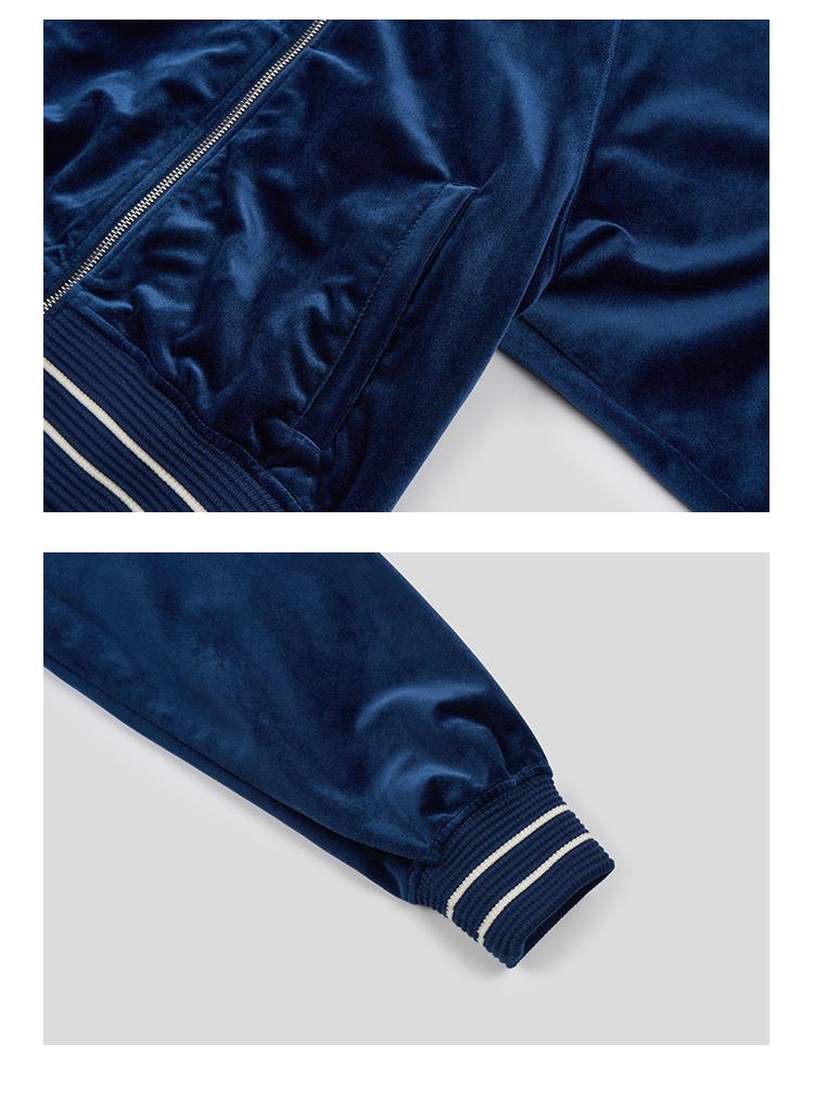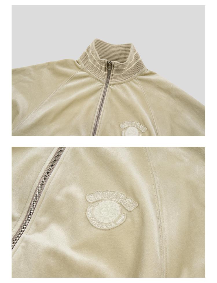 GOODBAI athletic学院贴布绣丝绒高领拉链外套