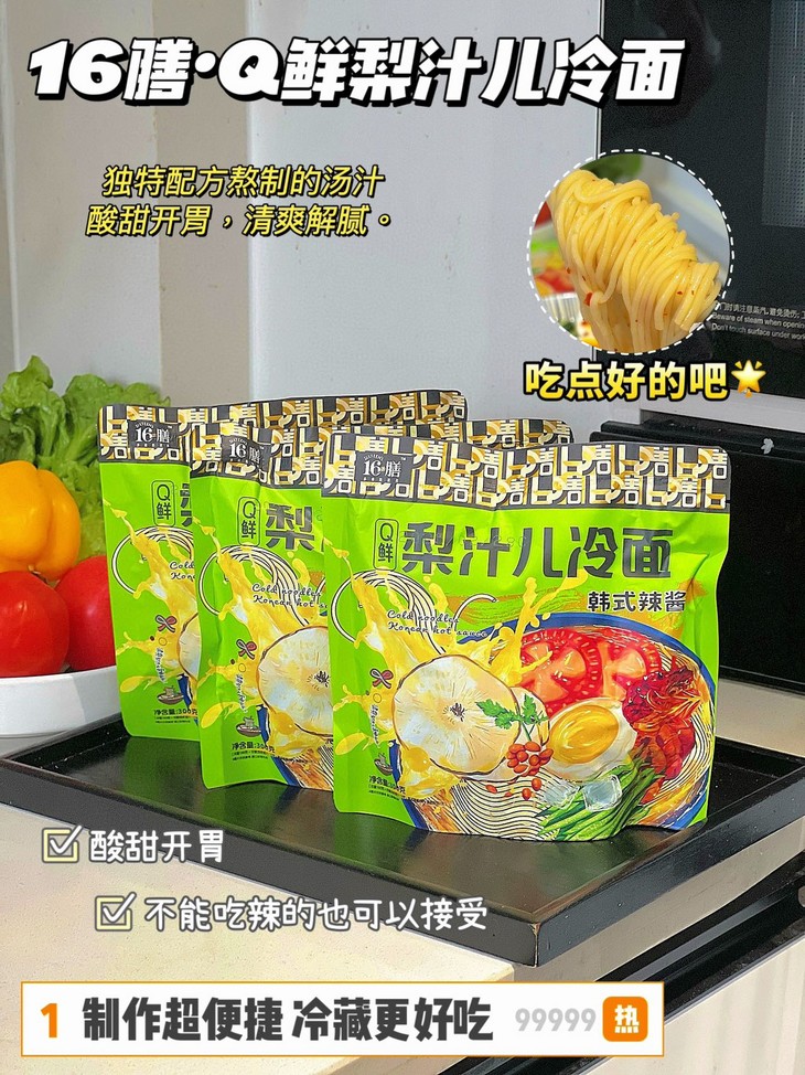 //【16膳·Q鲜梨汁儿冷面】韩式冷面🔥💰39.9抢🔟袋!Q弹冷面好吃到一口气连吃10天🤤 冰冰凉凉的韩式冷面适合炎炎夏日了🤤爽口解腻,好吃到汤汁都不剩!