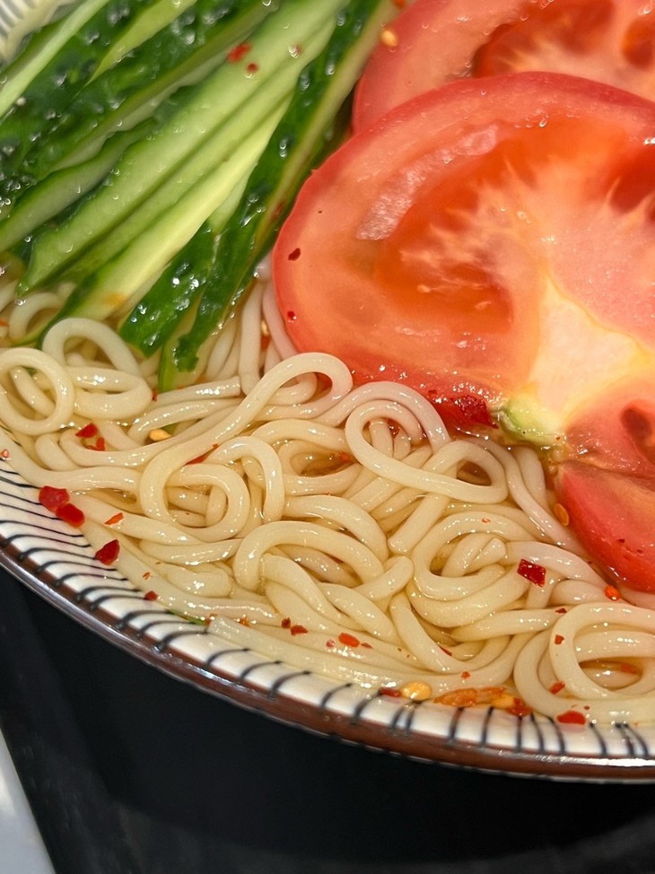 你吃过吗❓ 冷面里面加点冰块,一口下去冰冰凉凉,酸甜里面带点辣,浸润在汤汁里的面,筋道滑溜 脆脆的🧊冰渣子,真的非常美妙的口感❗ 每一口都是透心凉,把闷热都赶跑了 ! 自行可以搭配泡菜、黄瓜、菠菜、红萝卜、韩风芽菜,多种食材组合的一碗素食冷面清爽、营养热量低,再添几块冰块,瞬间凉爽值UP!