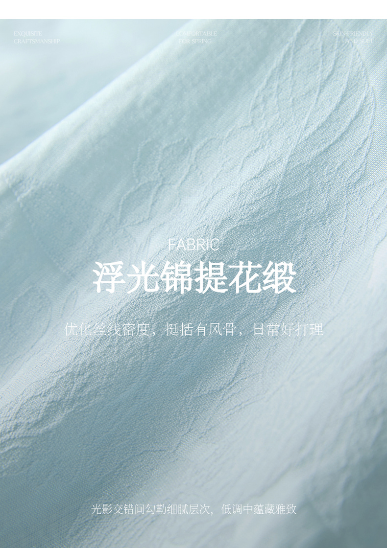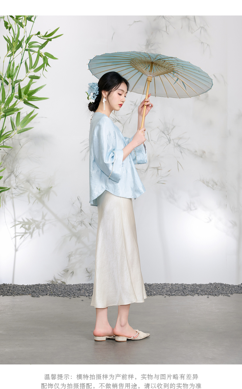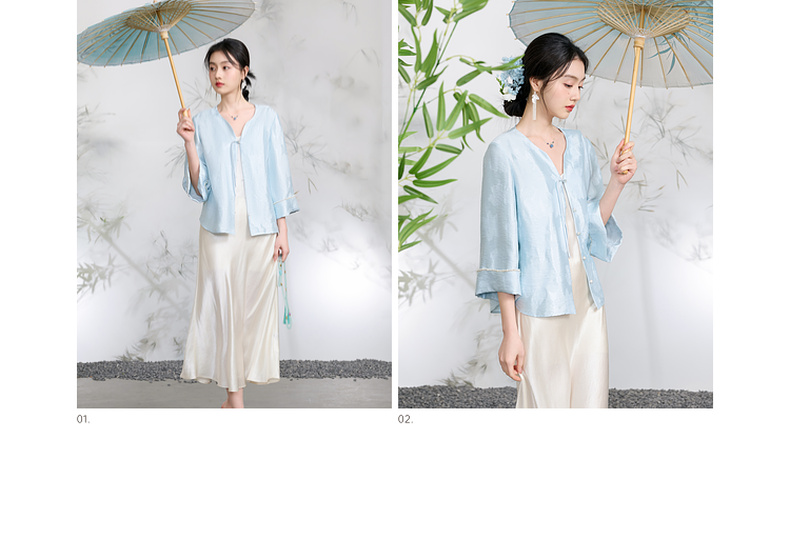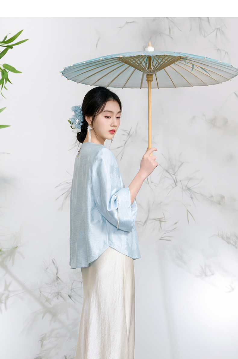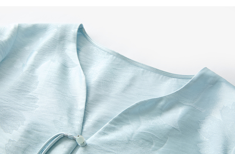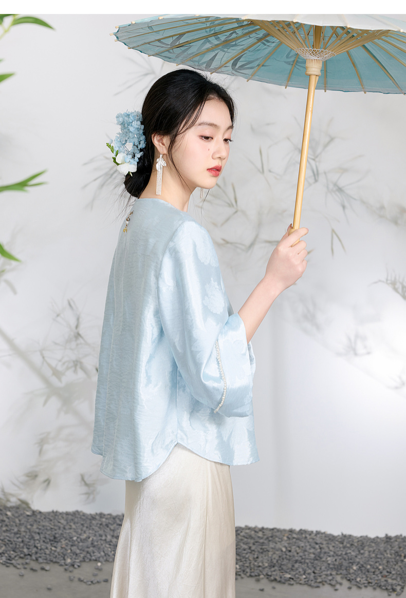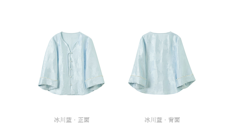 三彩【青青子衿】2026春季新款七分袖V领提花外套盘扣开衫宽松C