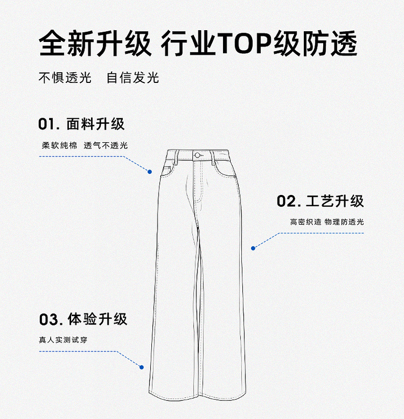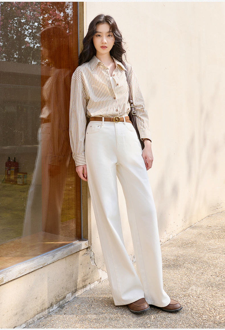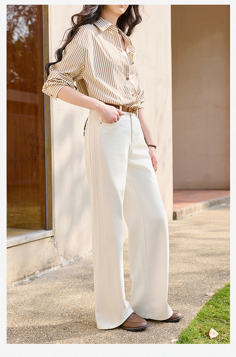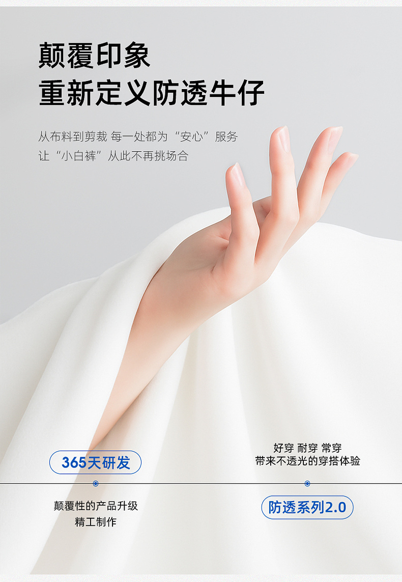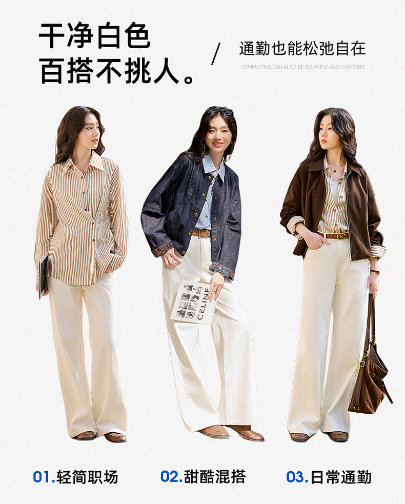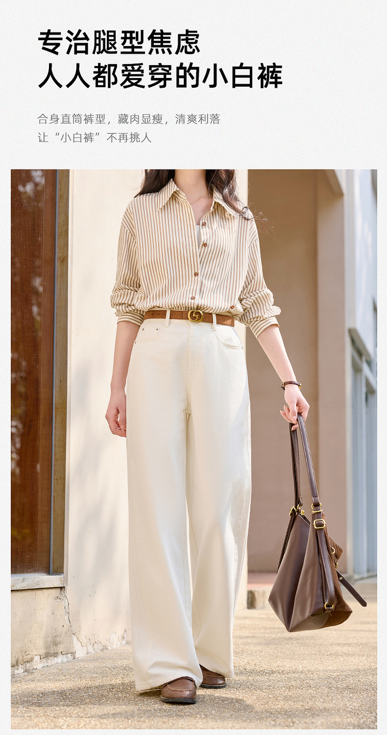 【防透小白裤】三彩2026春季新款休闲小白裤高腰牛仔裤直筒裤S