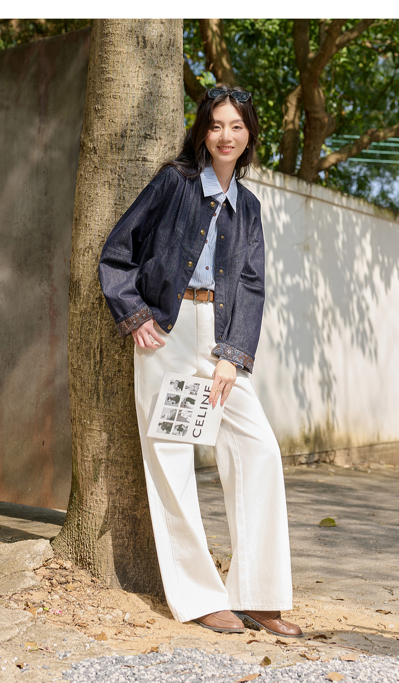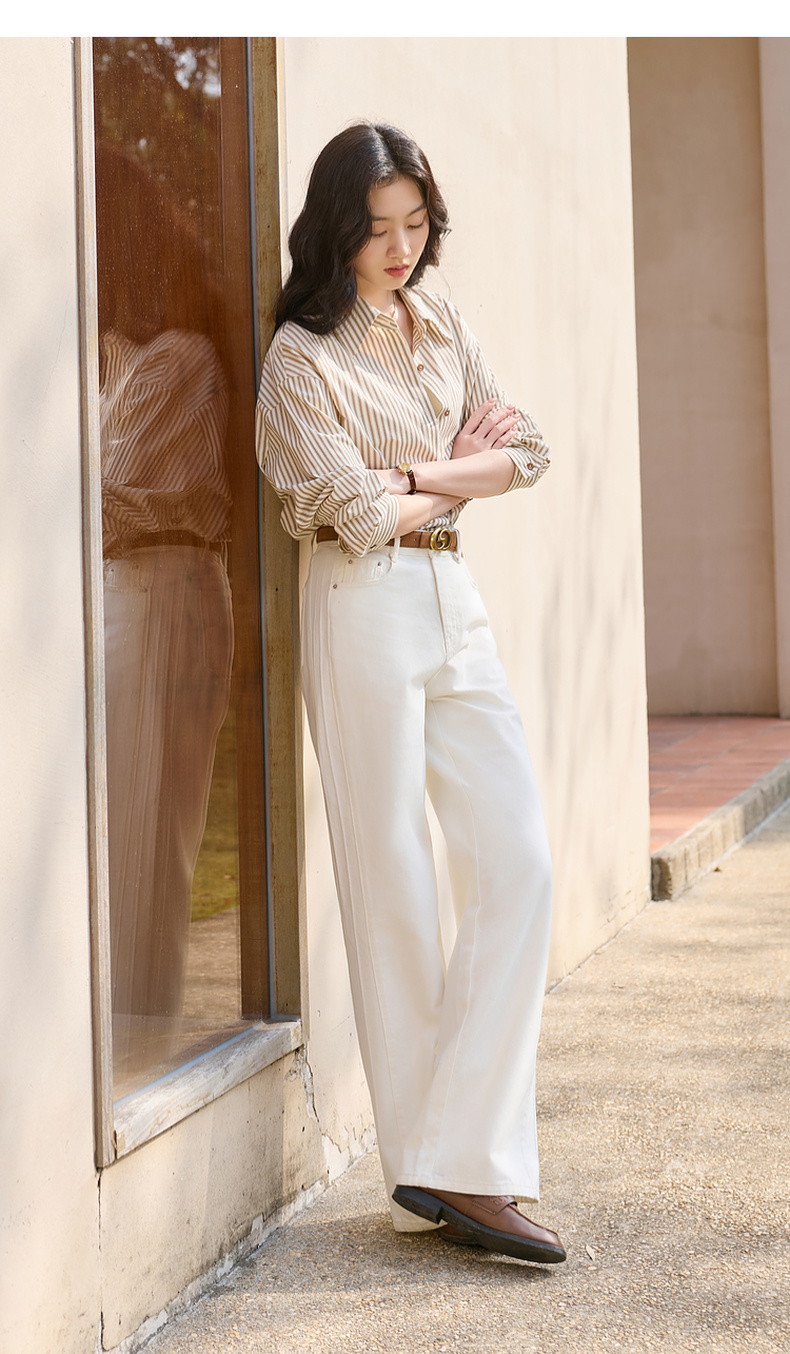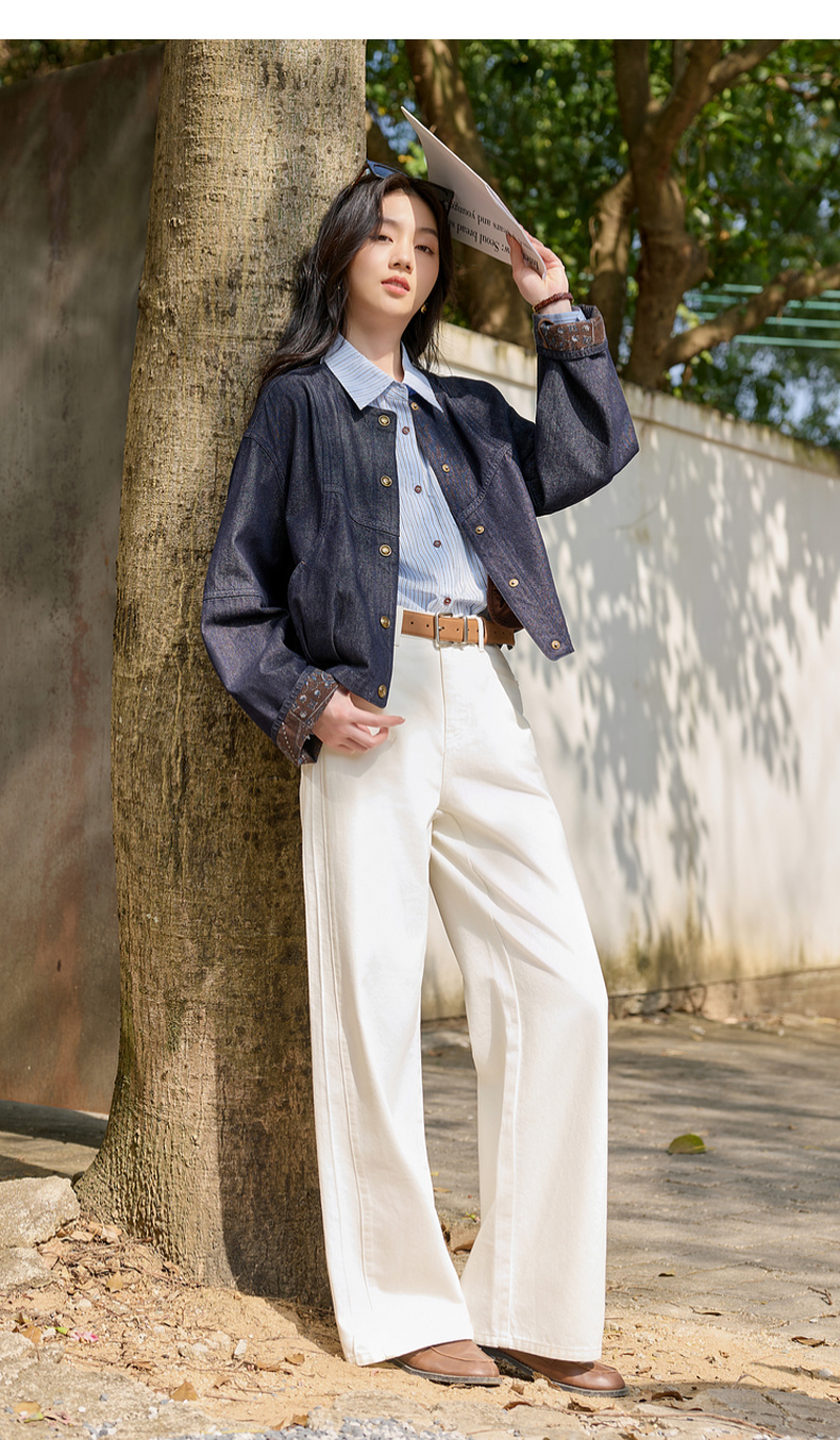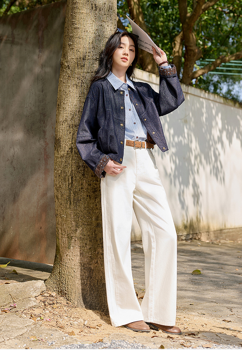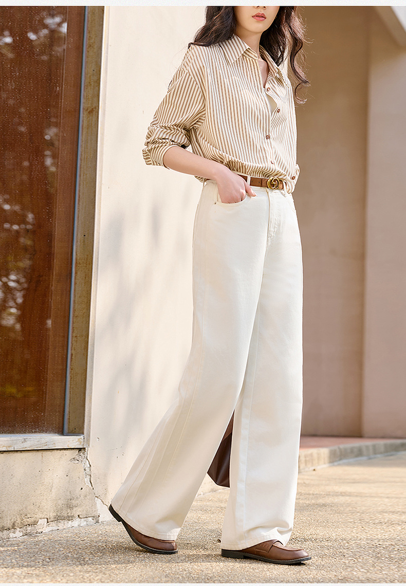 【防透小白裤】三彩2026春季新款休闲小白裤高腰牛仔裤直筒裤S