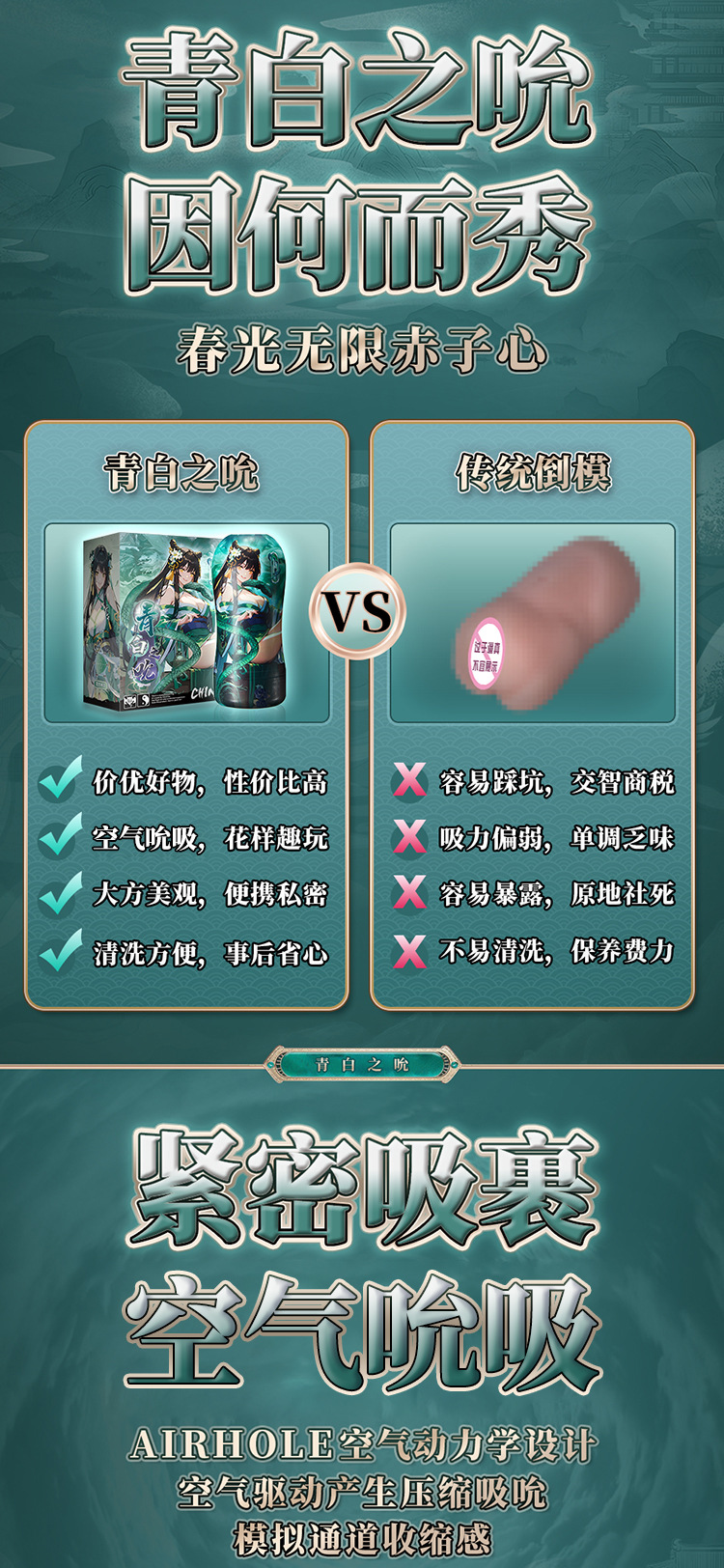 【男用器具】撸撸杯 青白之吮 仿真名器空气夹吸情趣男用自慰飞机杯