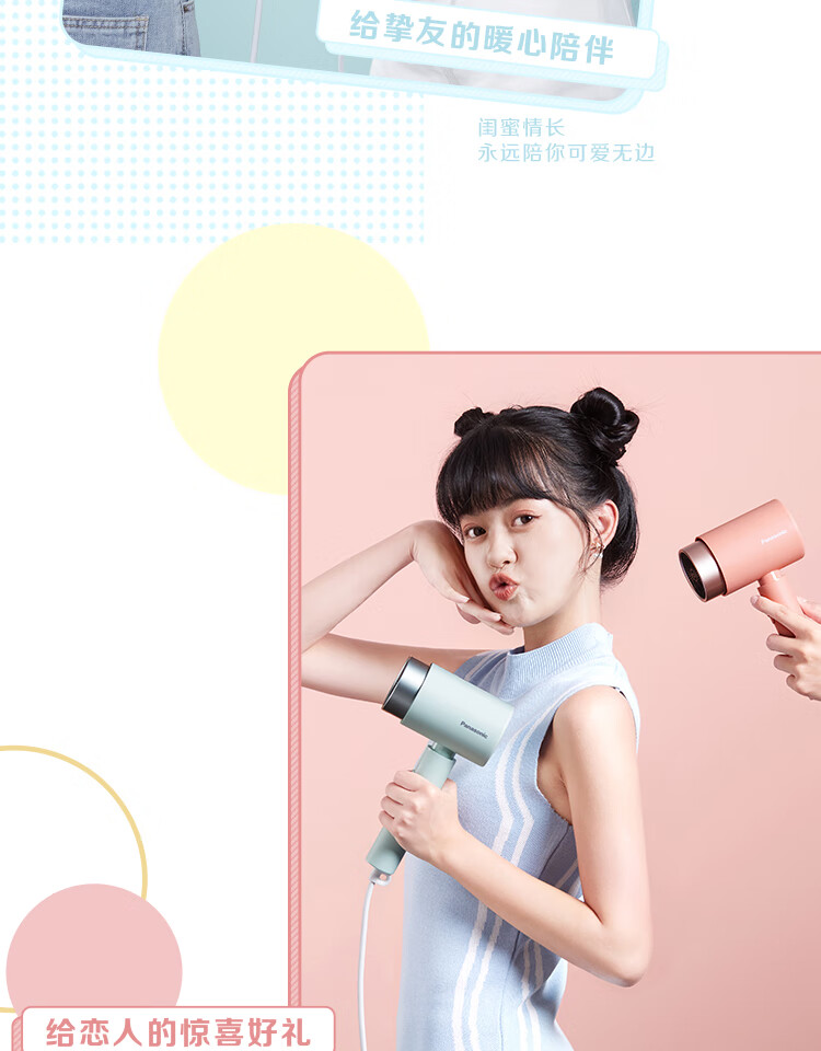 松下(Panasonic)电吹风机家用 大功率速干 宿舍学生轻巧便携智能恒温 情人节送女朋友礼物负离子护发吹风筒5H EH-WNE5HG405 牛油果绿