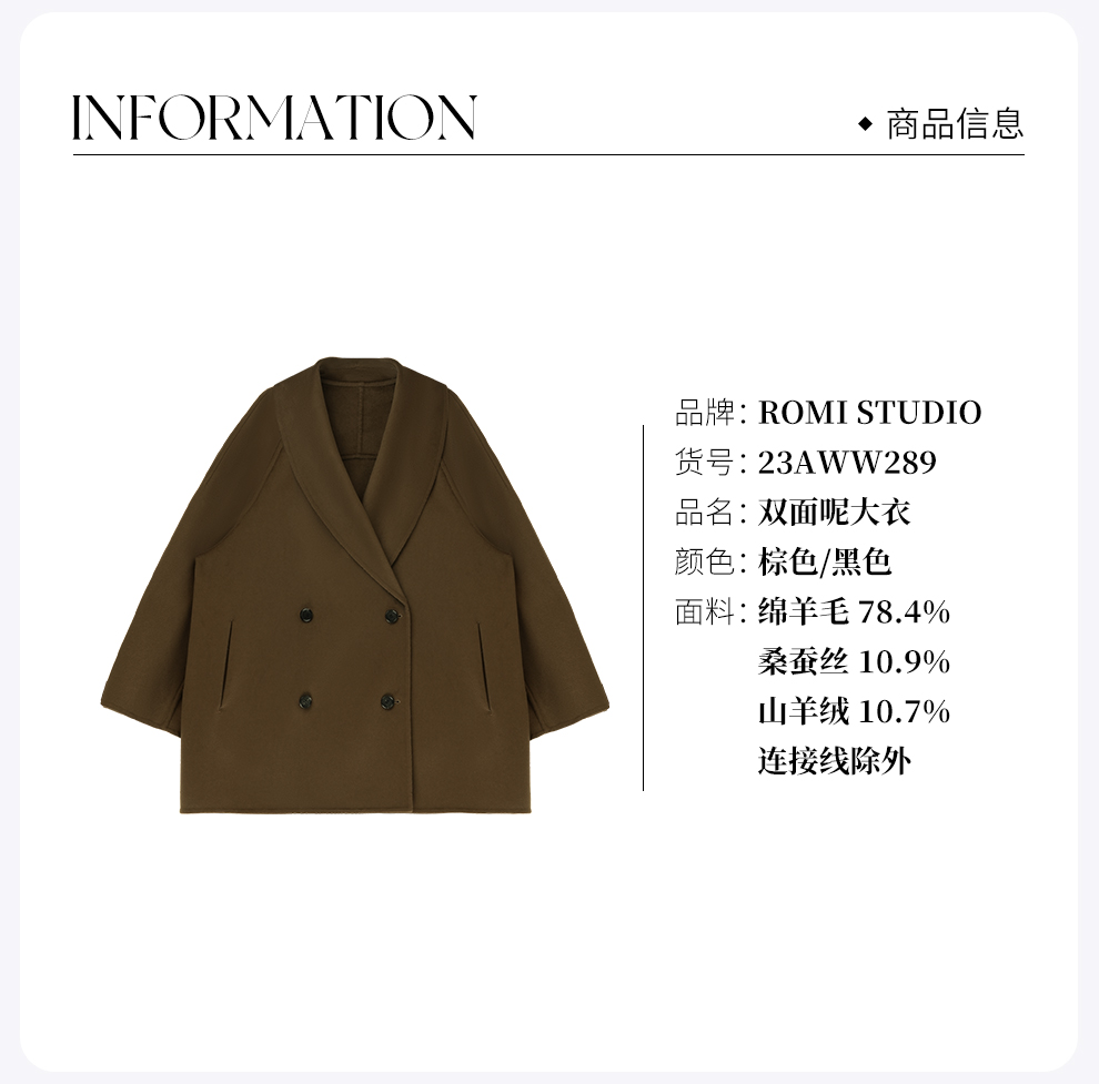ROMI STUDIO“美拉德”“腔调穿搭”羊绒蚕丝混纺双面呢大衣23AWW289