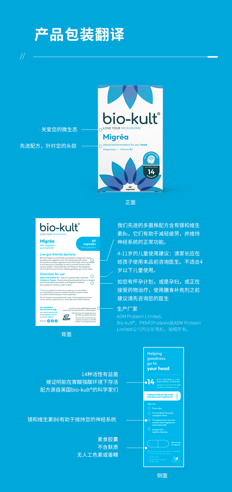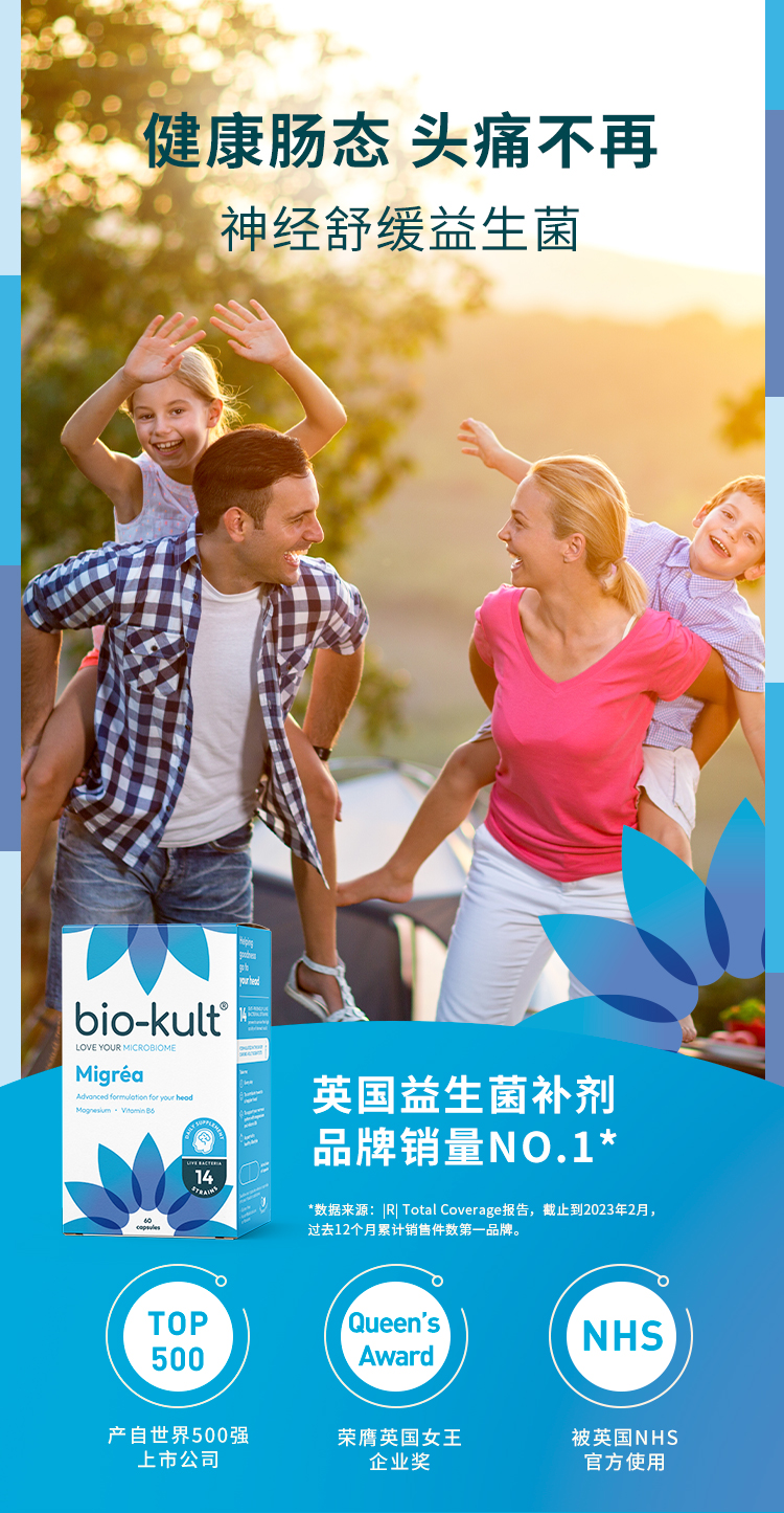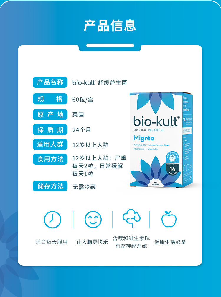 【头痛菌】bio-kult百康百德神经舒缓偏头痛益生菌英国原装进口60粒
