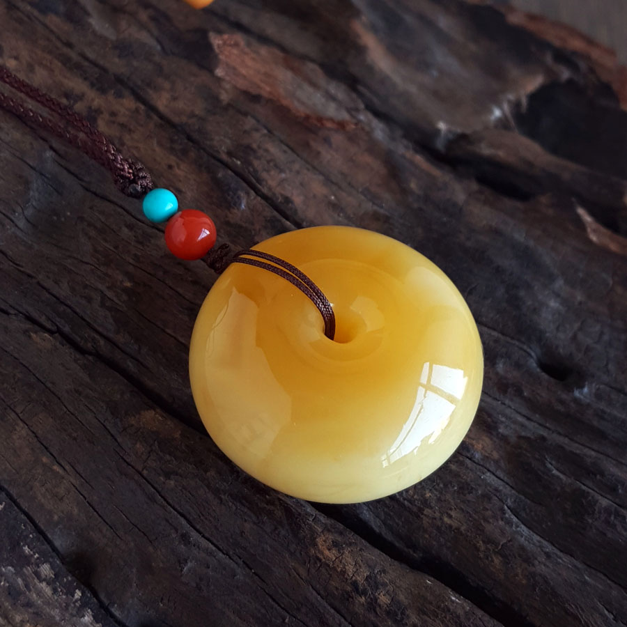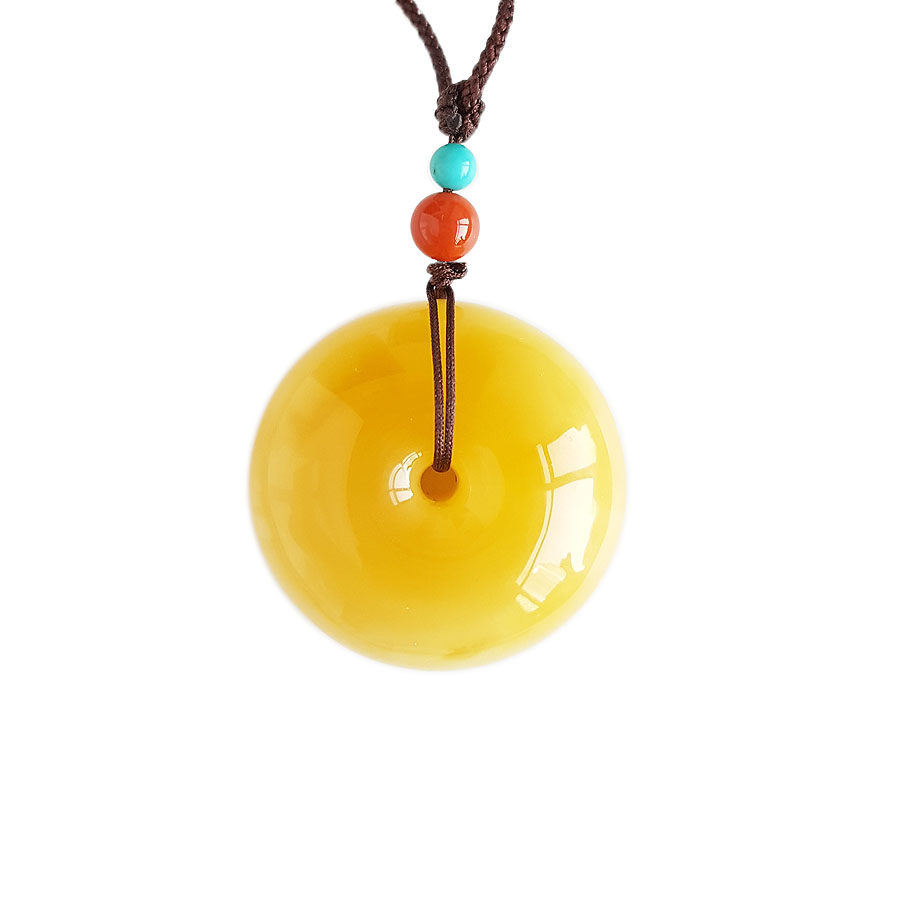 名称 | 天然满蜜鸡油黄平安扣蜜蜡吊坠项链 |