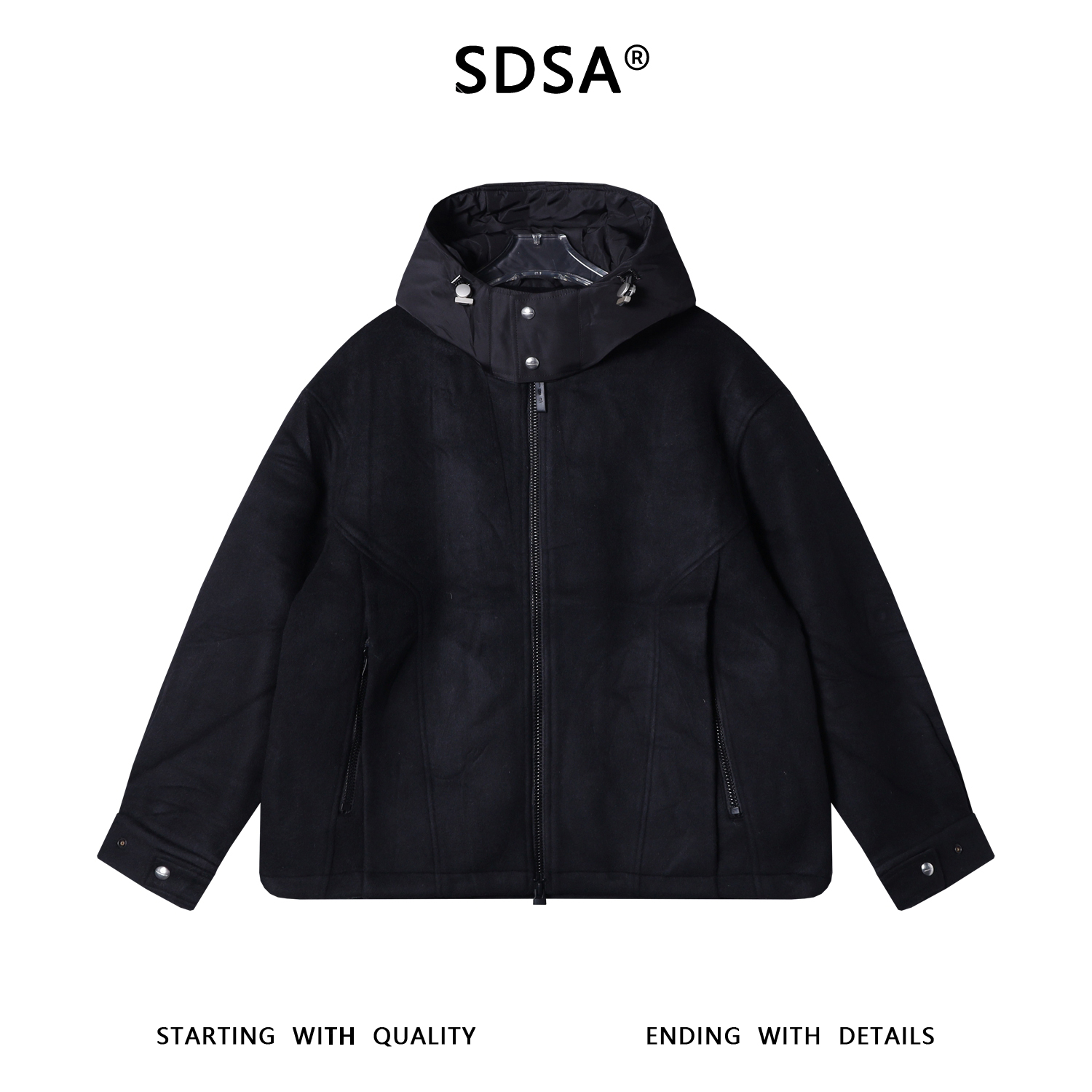 250511SDSA秋冬新款痞帅男装潮牌简约拼接拉链立领连帽鹅绒服外套百搭
