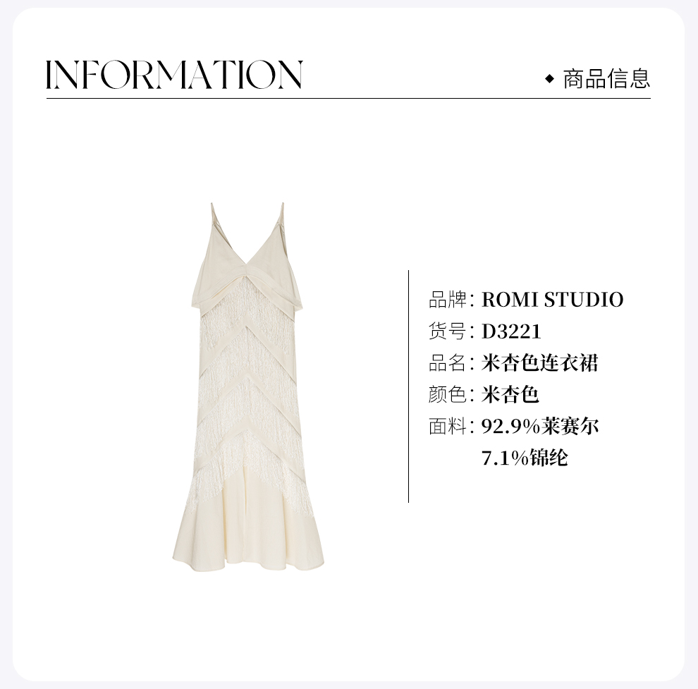 ROMI STUDIO“棕标系列”自然肌理垂感流苏吊带露背连衣裙 D3221