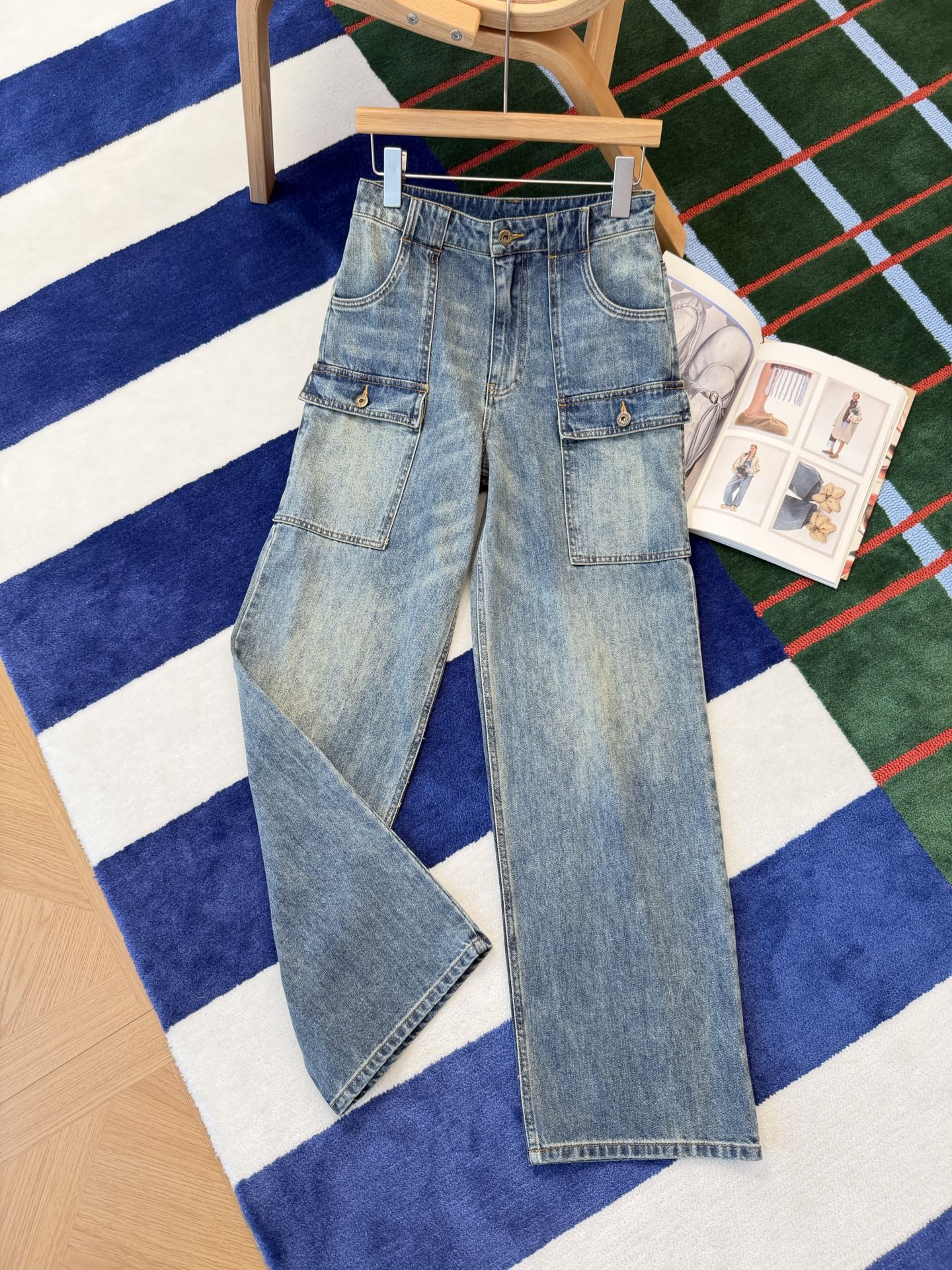 【爆款现货发售】26Ss新款工装裤🔥这件工装牛仔裤真的火到一件难求‼️ Y2K千禧辣妹神裤🥳多口袋设计帅惨了,直筒版型一穿直接腿长两米,瞬间拉回那个时髦又松弛的千禧年 🉑️硬朗丹宁遇上柔软上衣,意外的时髦平衡感✨时髦精必入没错☺️水洗色太绝了,版型也完全长在审美上💗欧洲进口牛仔坯布,挺阔有型🆒真的yyds‼️长度恰到好处🔝上身瞬间修饰腿型,梨形身材的完美救星🔒自带高级感,四季都能穿💕这种穿多少年都不会过时的款,建议人手一条🔜码数SML