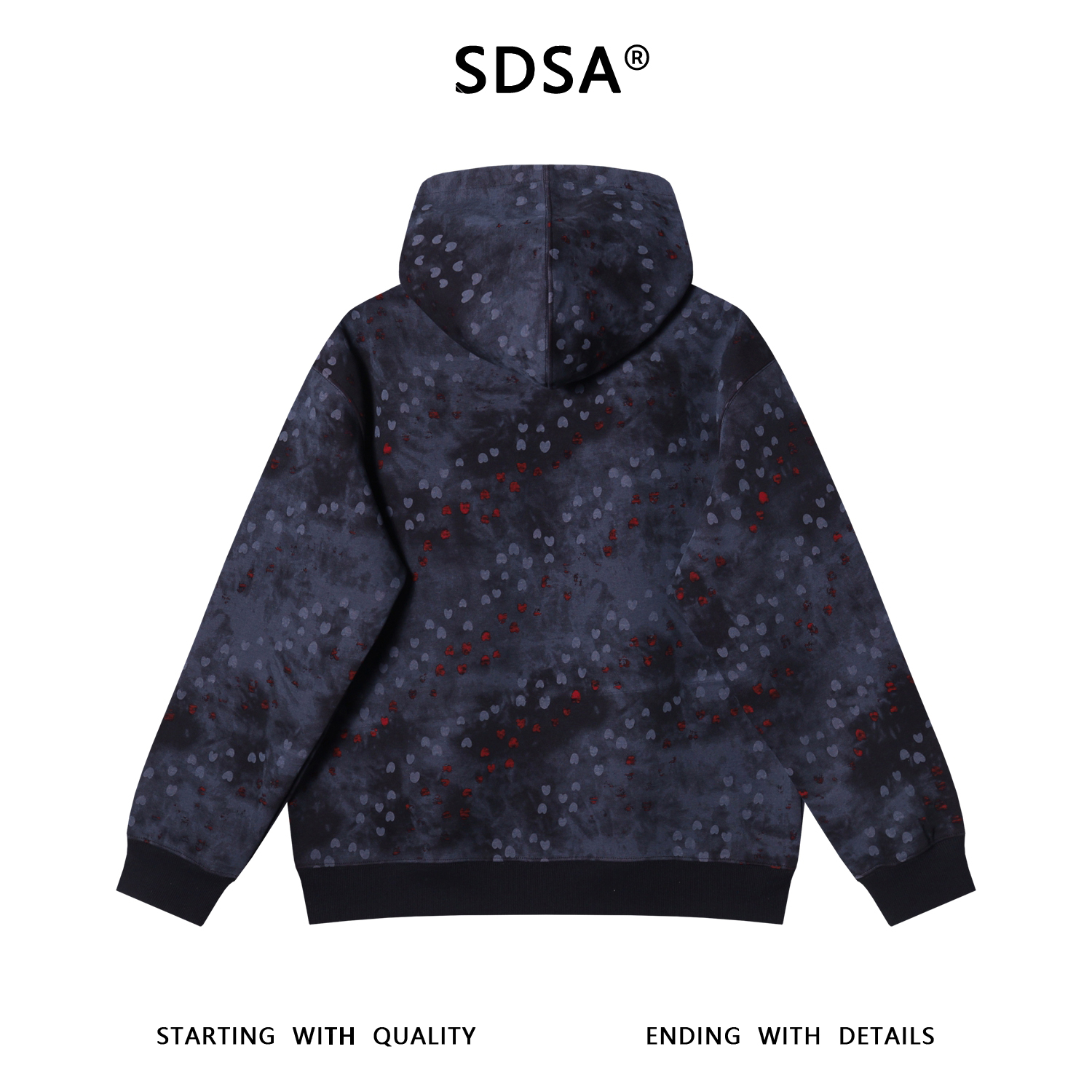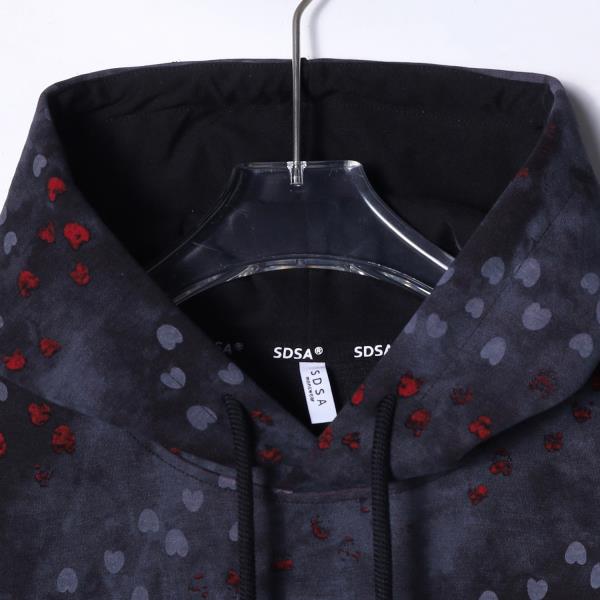 WY1050SDSA男士秋冬新款痞帅男装时尚扎染满印爱心印花抽绳连帽卫衣百搭