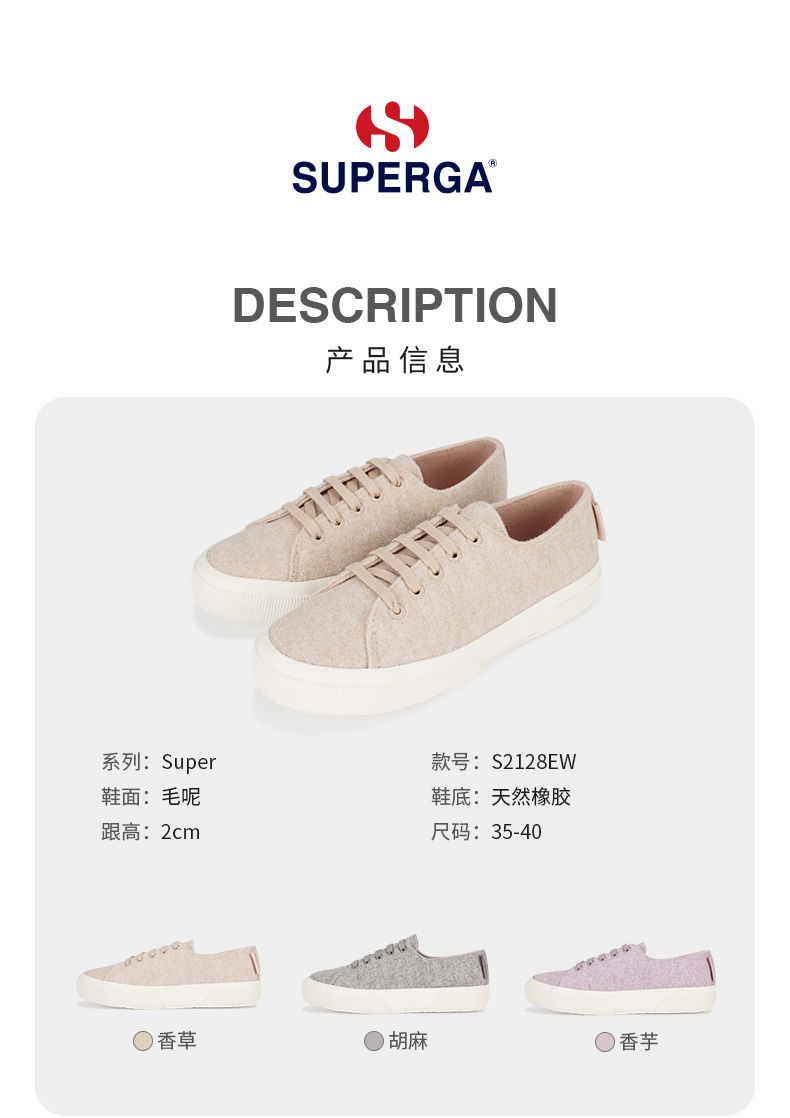 SUPERGA软毛呢低帮鞋冬季保暖舒适意大利百搭小众休闲鞋经典