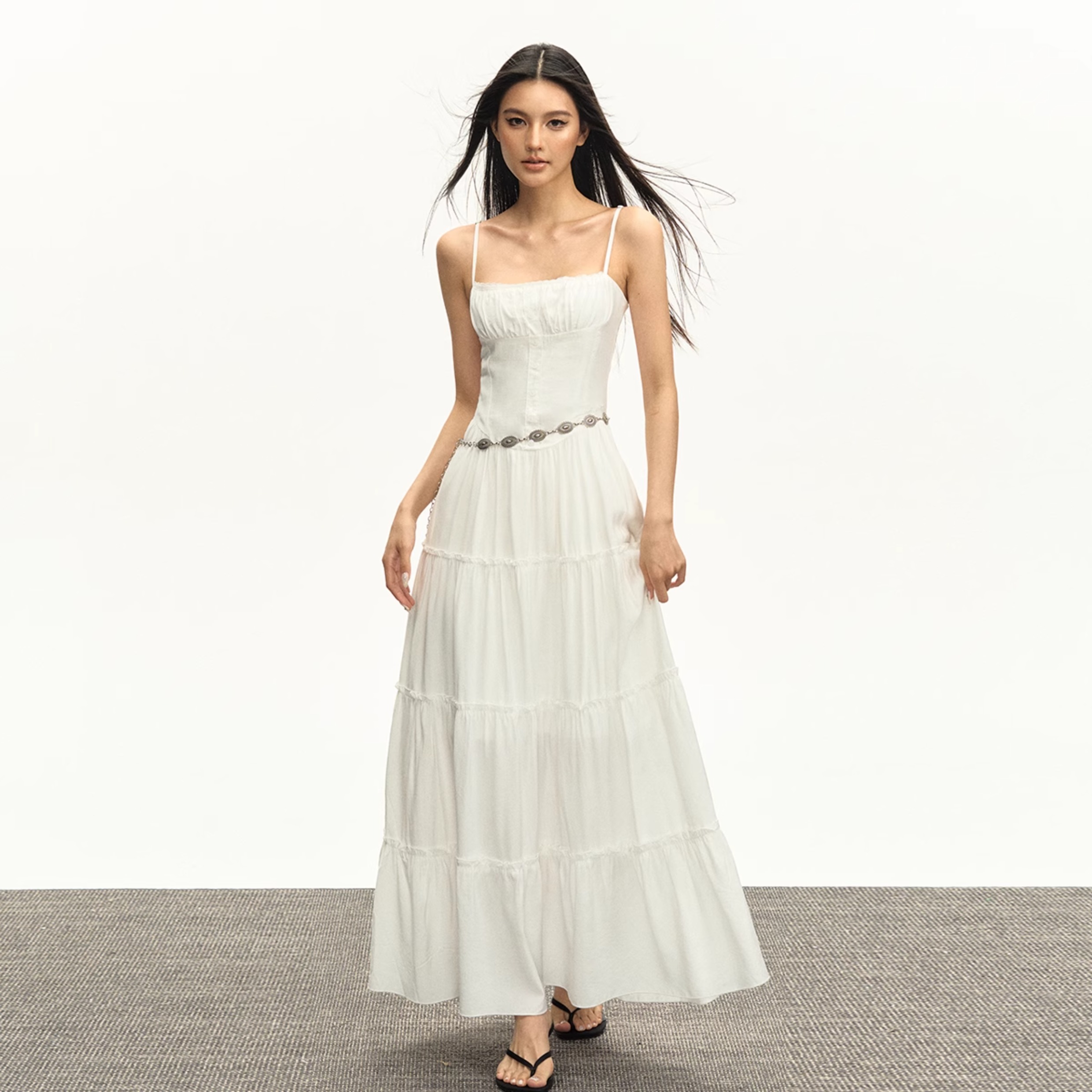 Ariseism美式复古白色吊带连衣裙女2025夏季新款裙子修身显瘦长裙