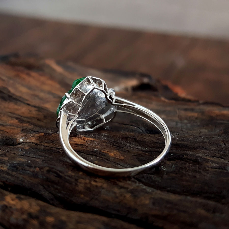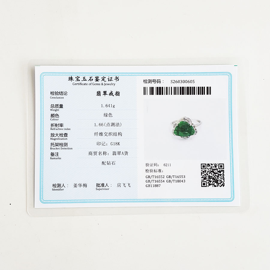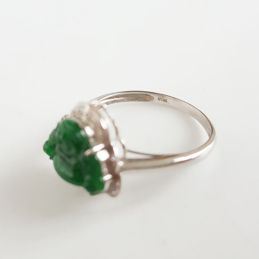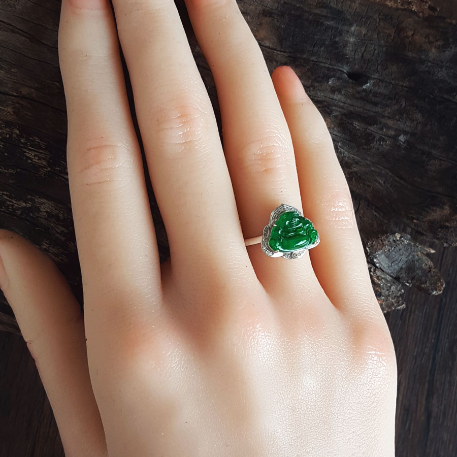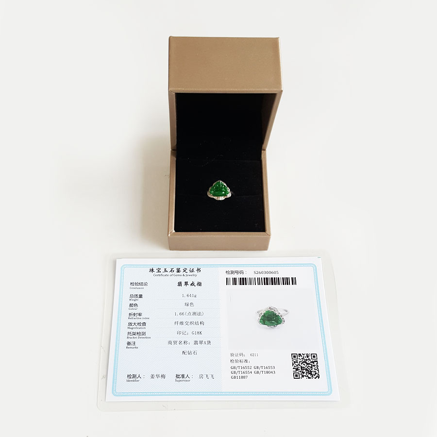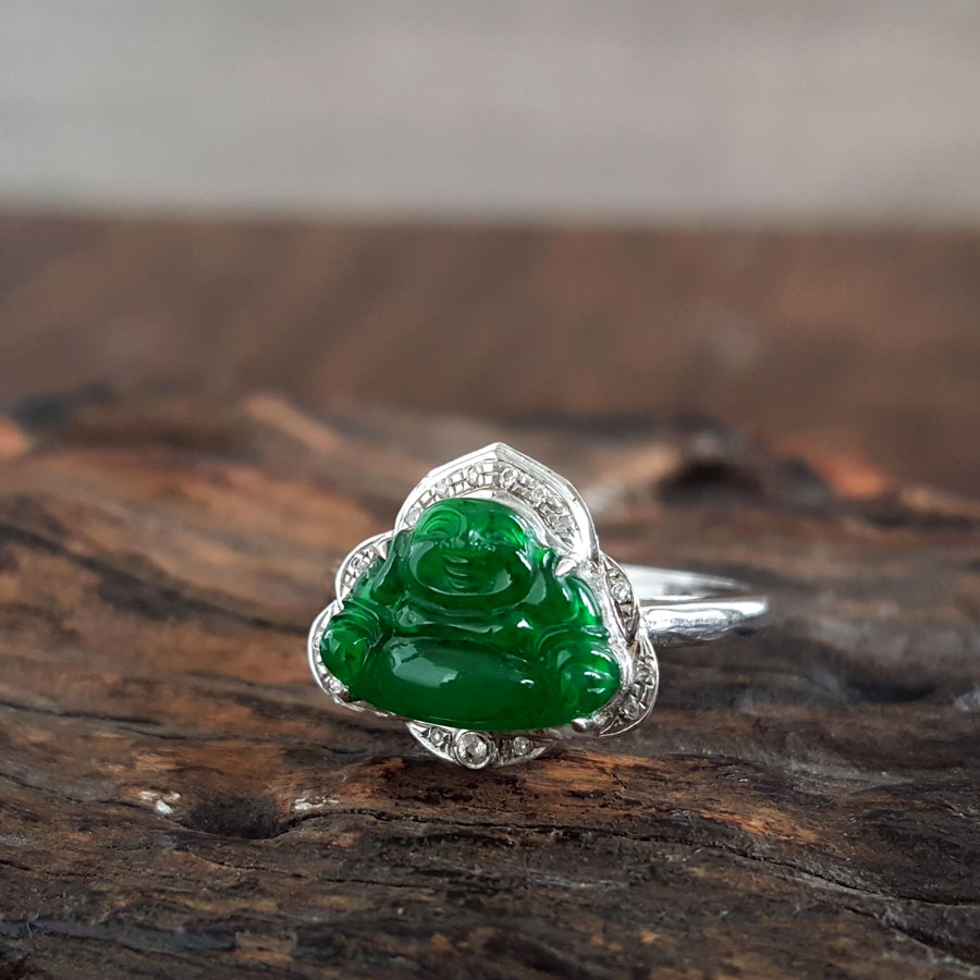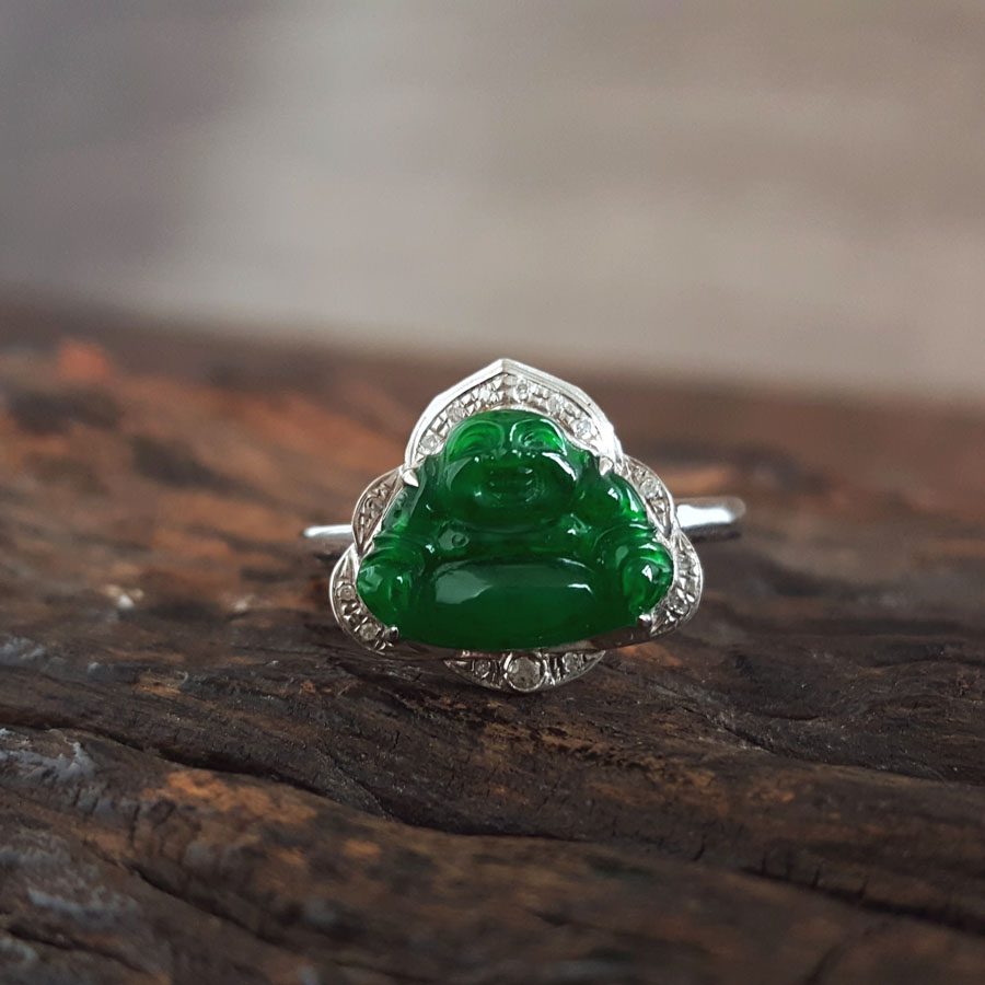 名称 | AU750白金镶钻镶天然细腻冰种满绿佛公翡翠戒指 |