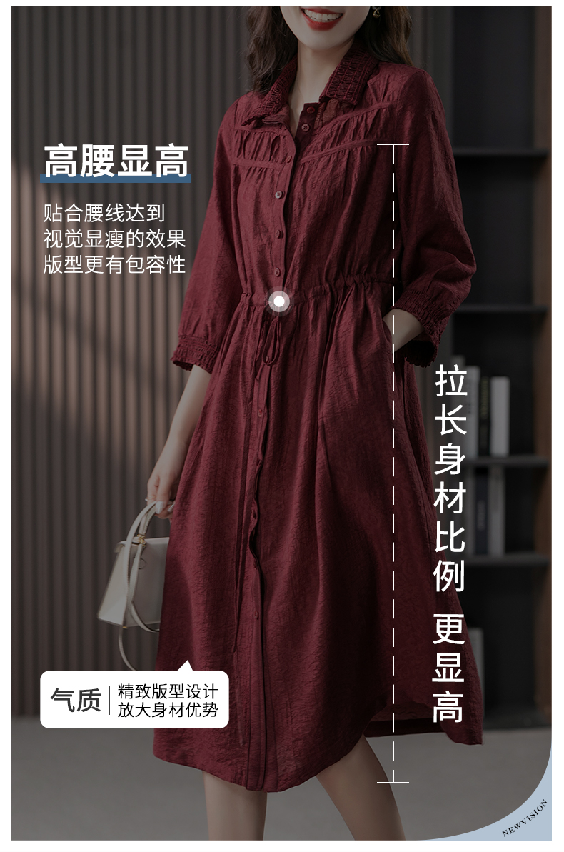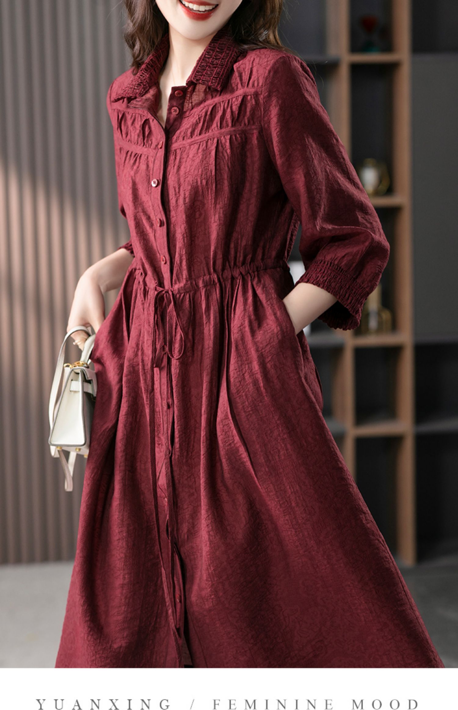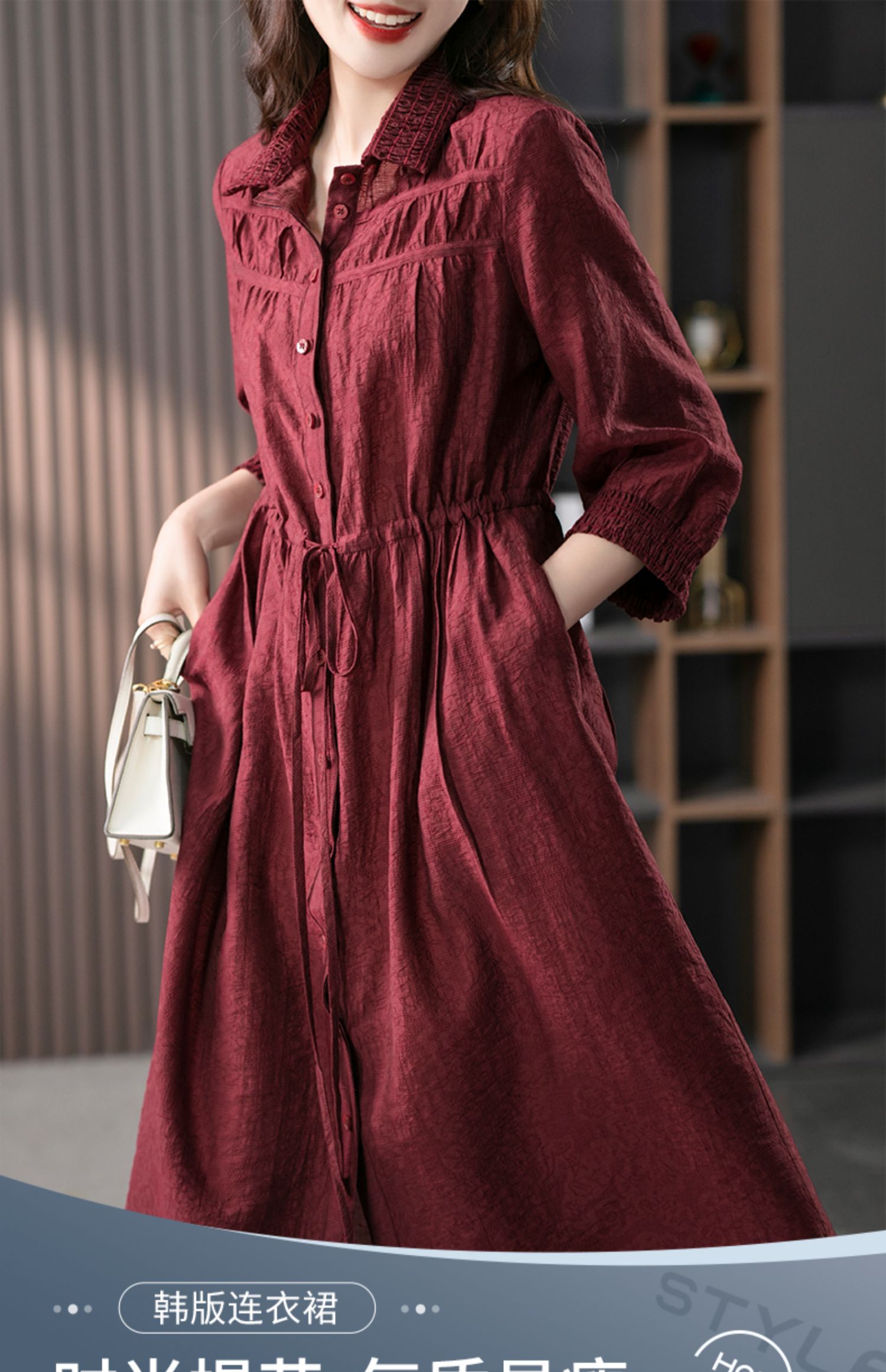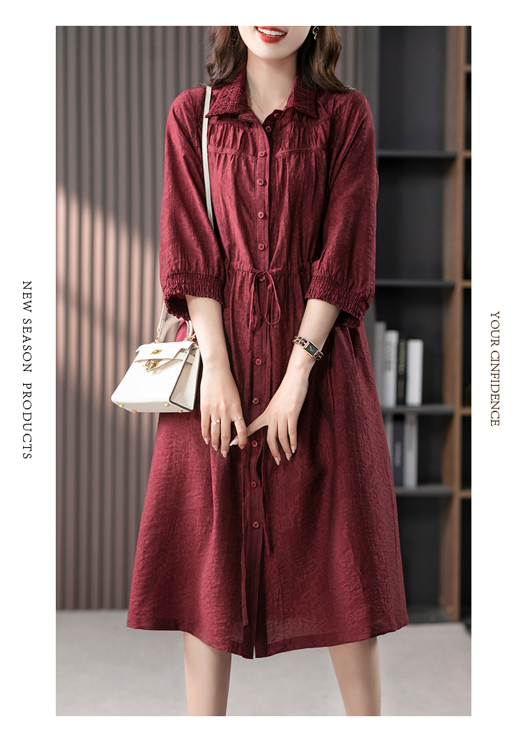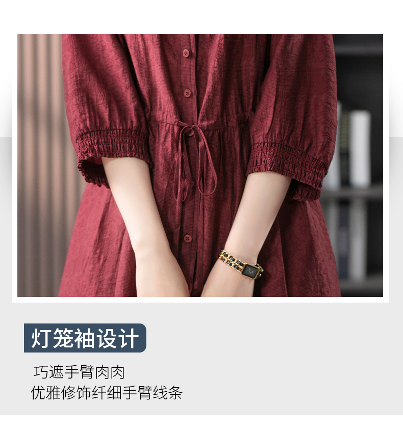 YX【现货7天】高级感五分袖连衣裙女2023夏季新款韩版收腰显瘦中长款衬衫裙