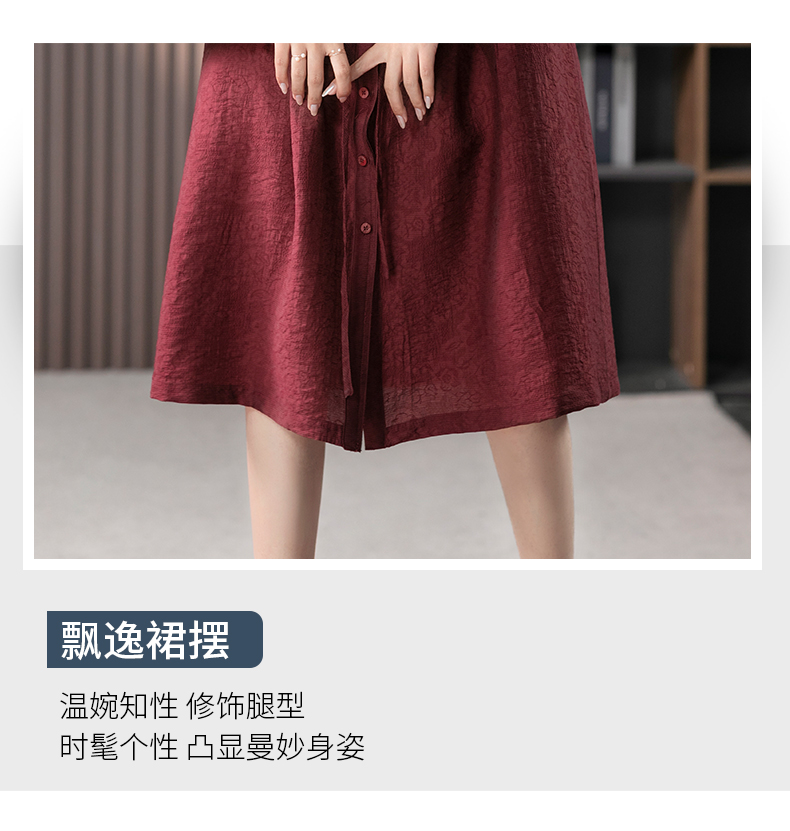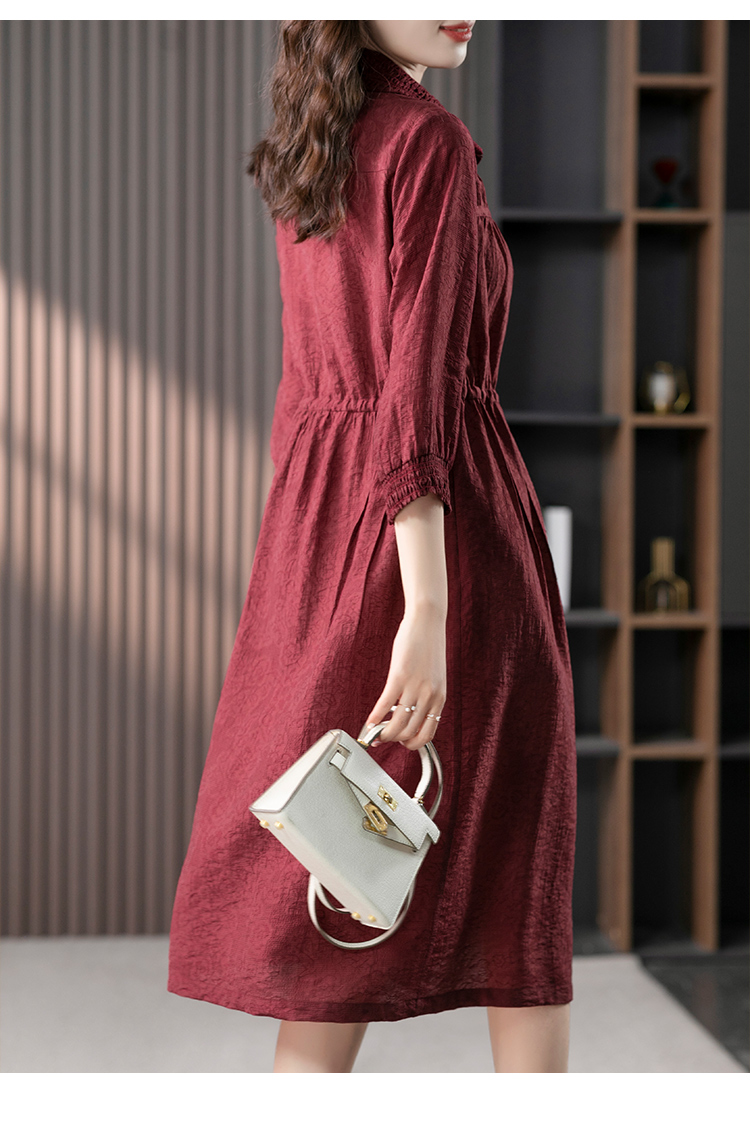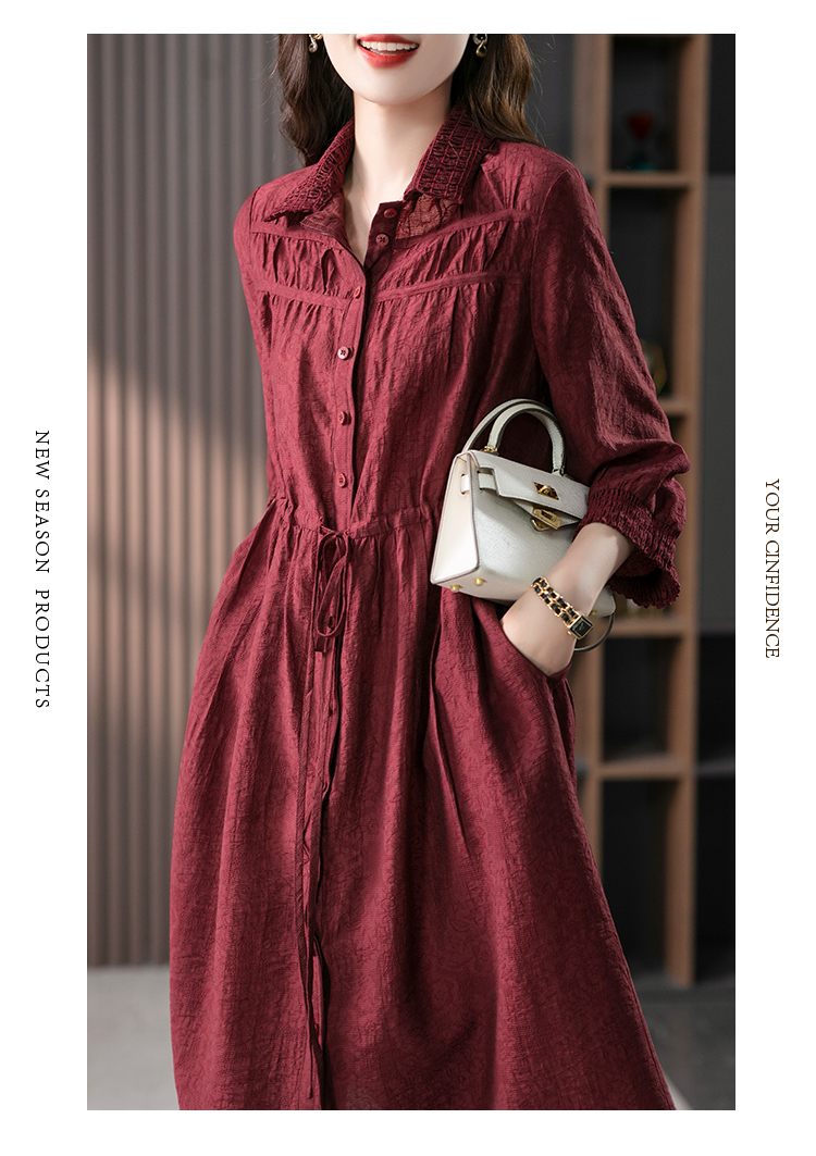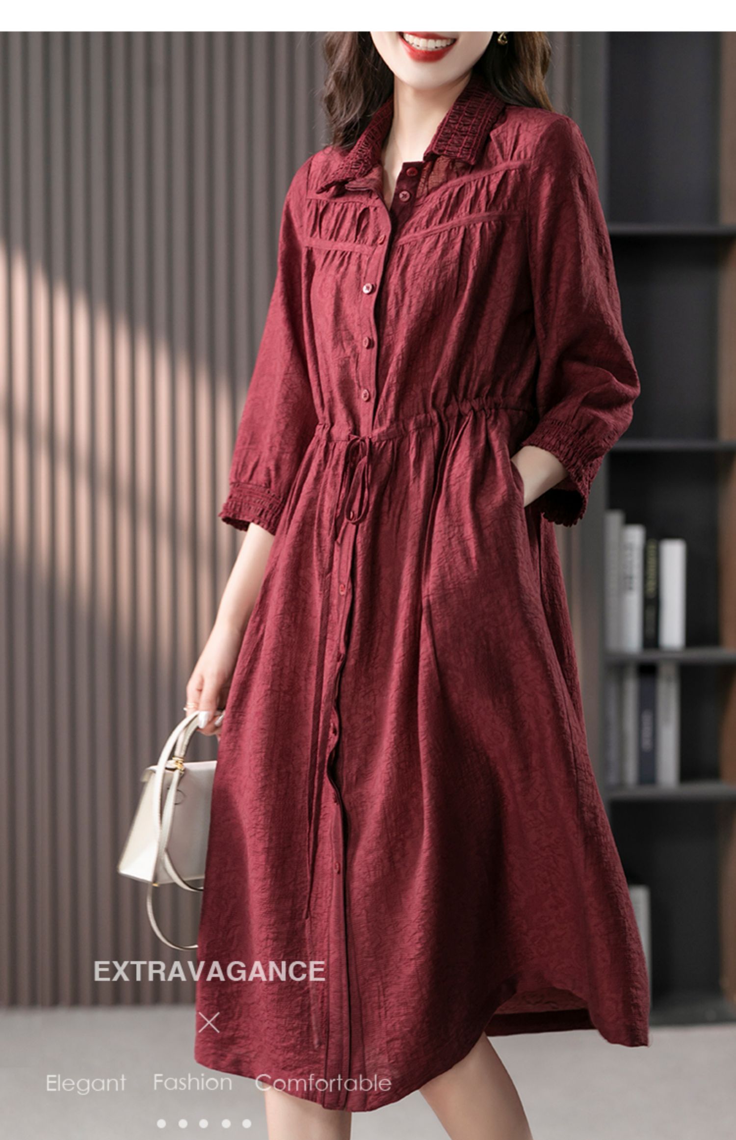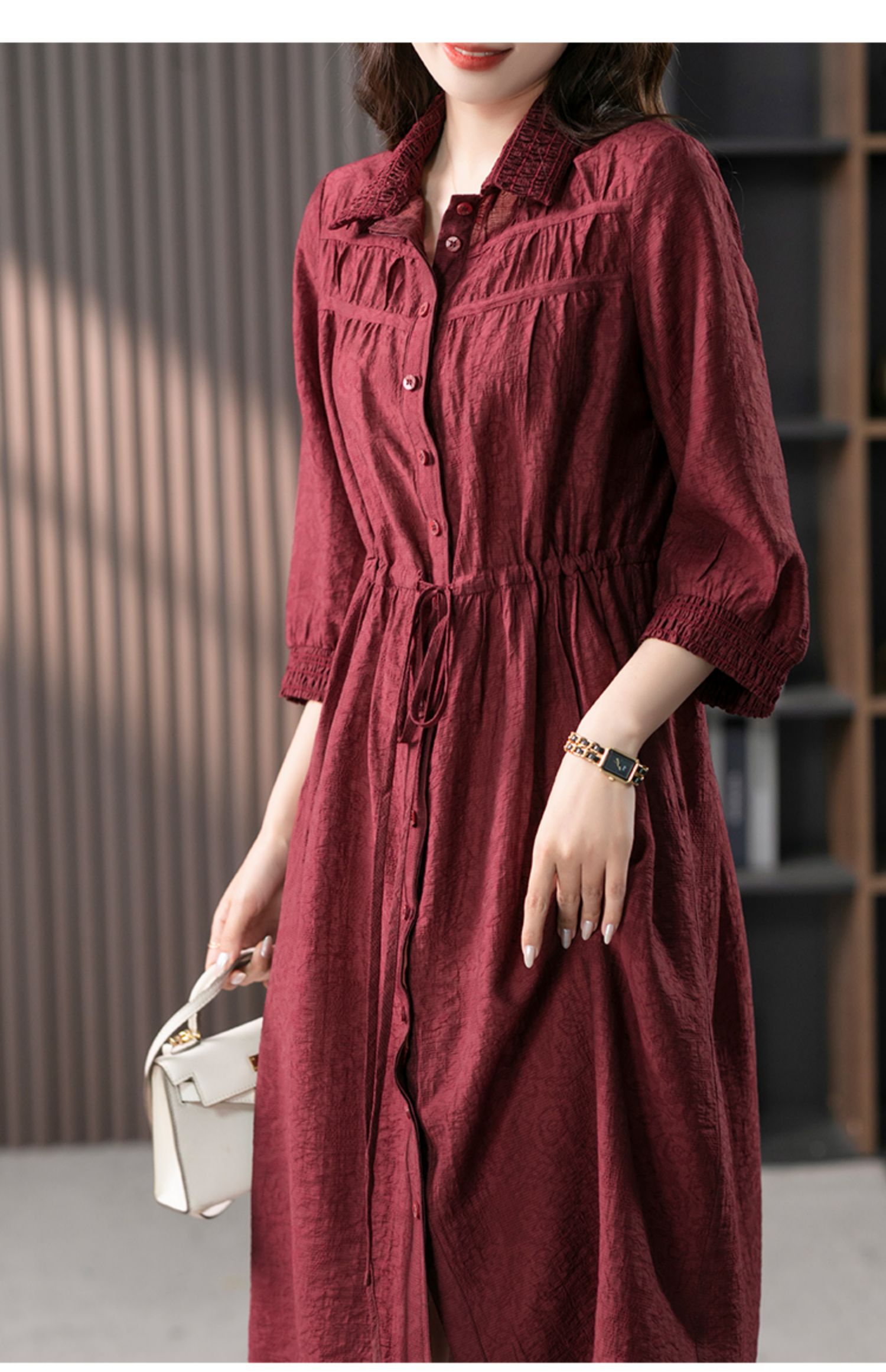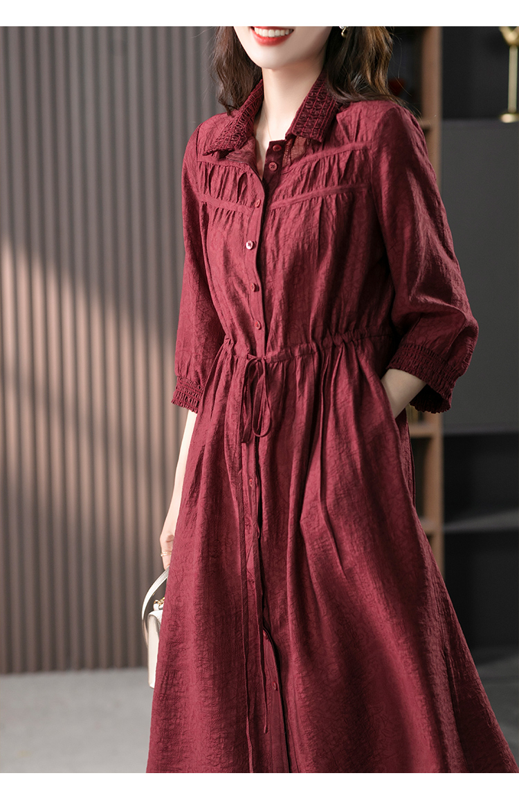 YX【现货7天】高级感五分袖连衣裙女2023夏季新款韩版收腰显瘦中长款衬衫裙