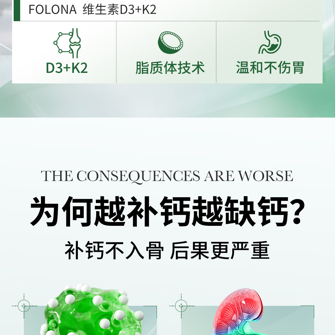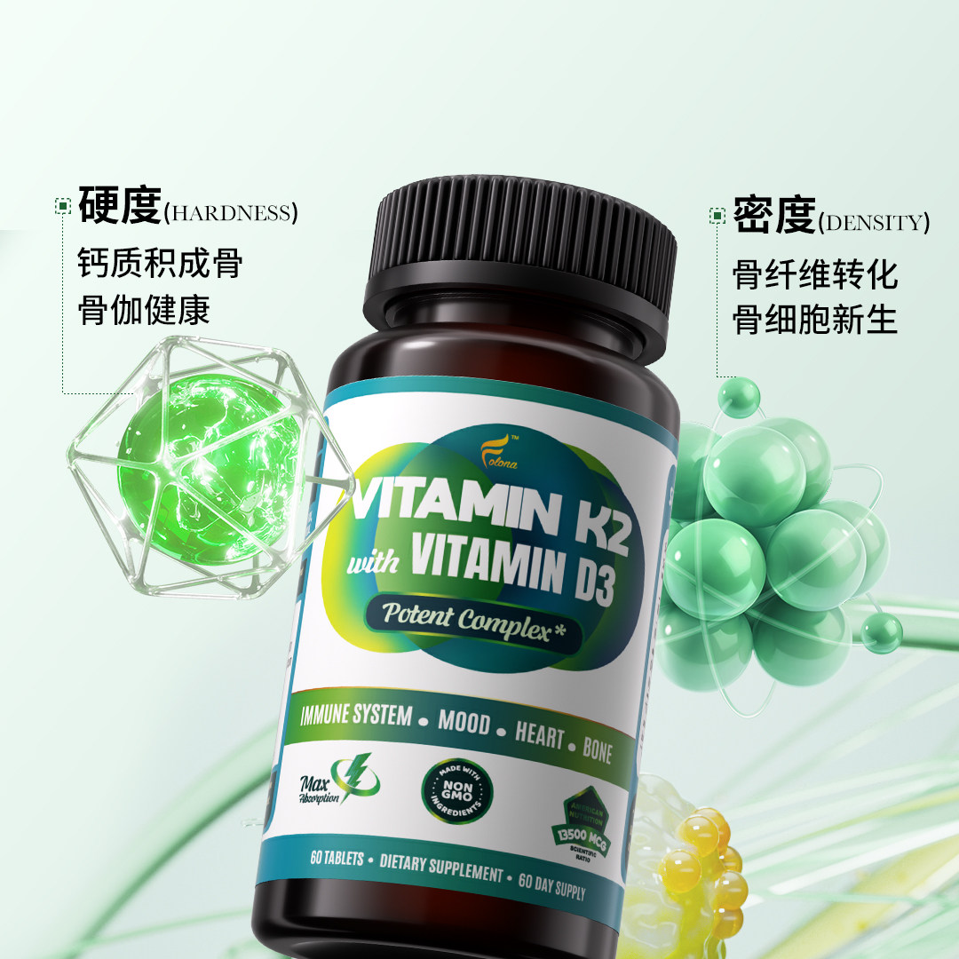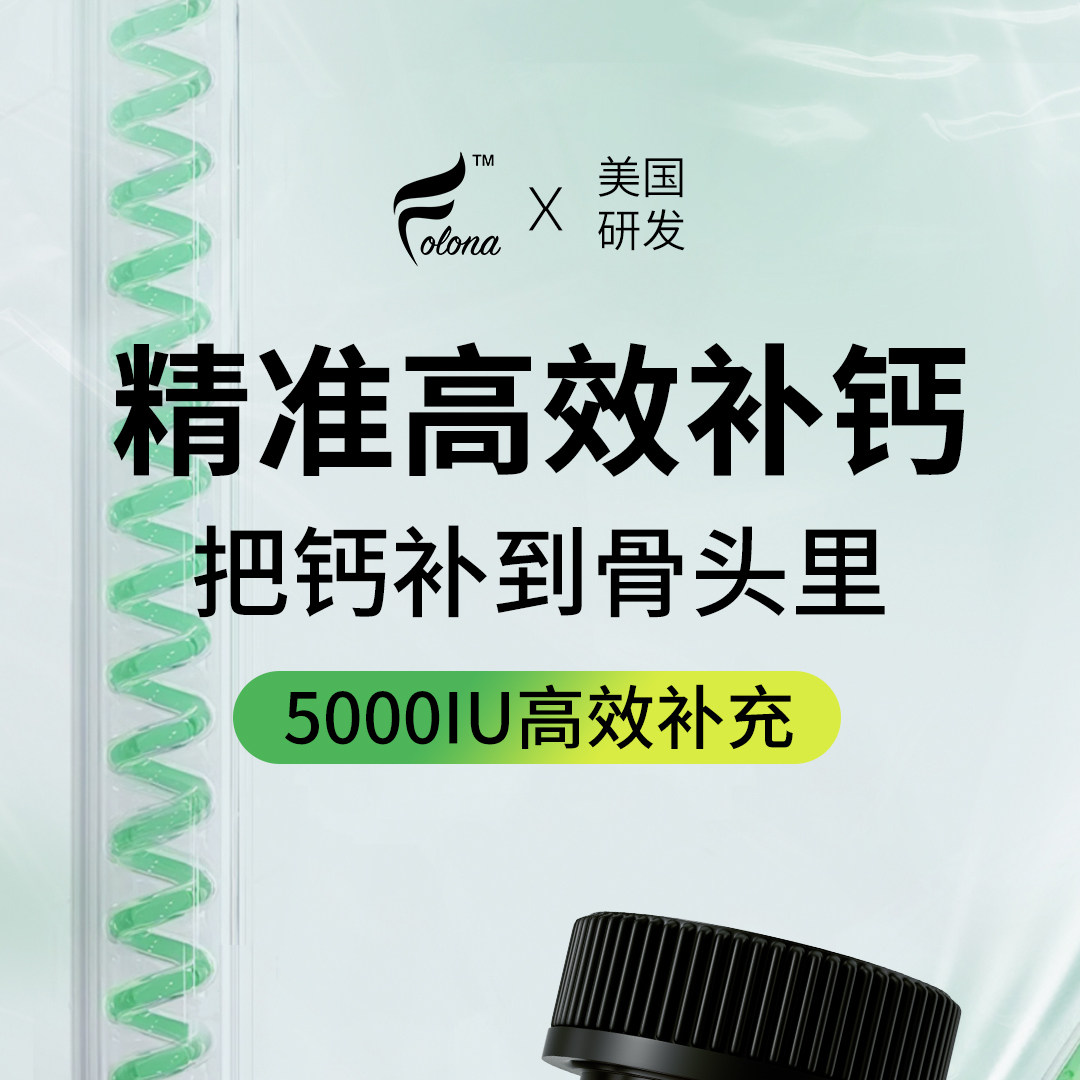 FOLONA维生素D3K2高效钙5000IU骨骼健康补充钙质促吸收美国进口