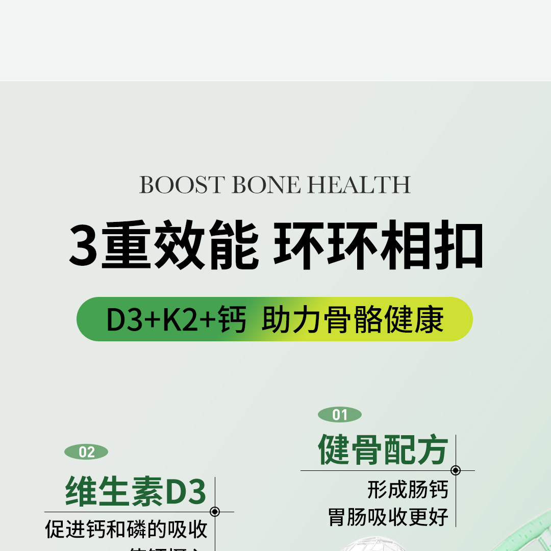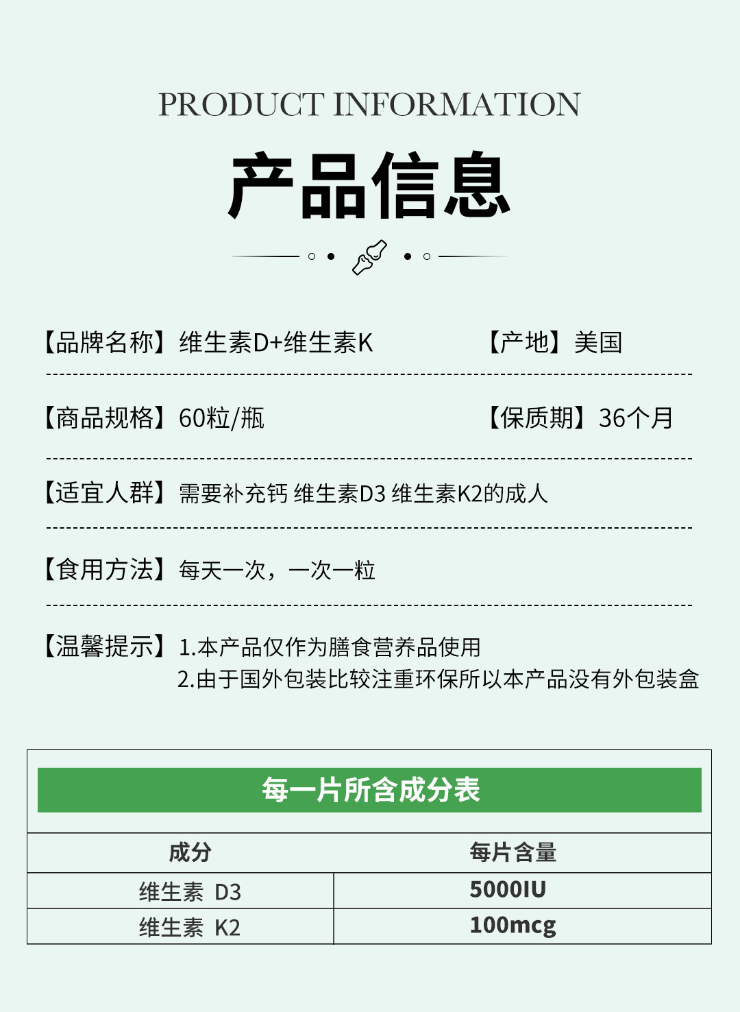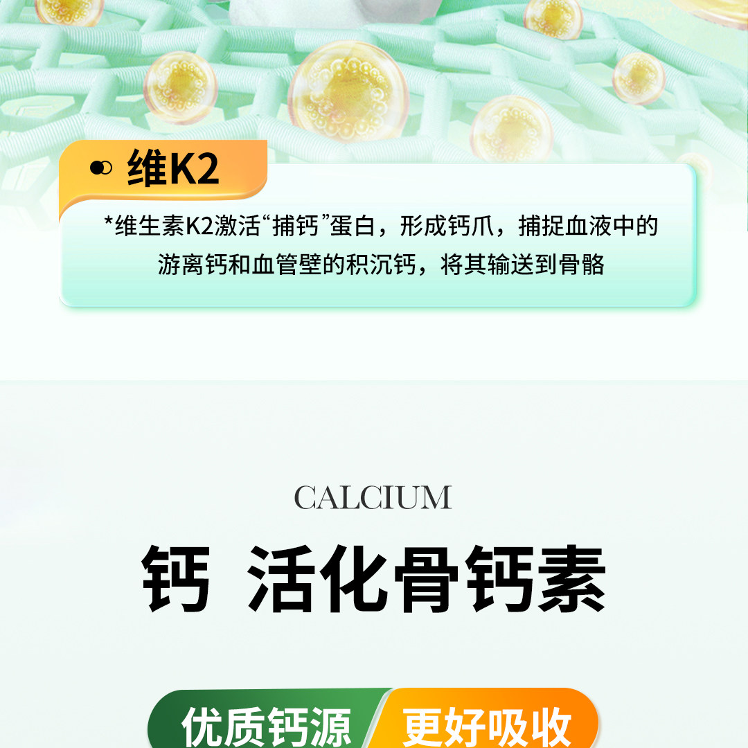 FOLONA维生素D3K2高效钙5000IU骨骼健康补充钙质促吸收美国进口