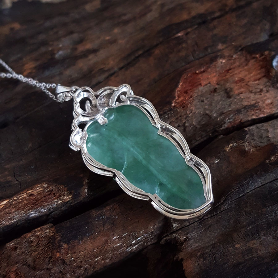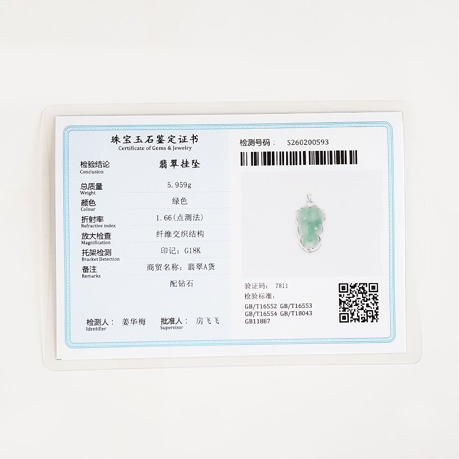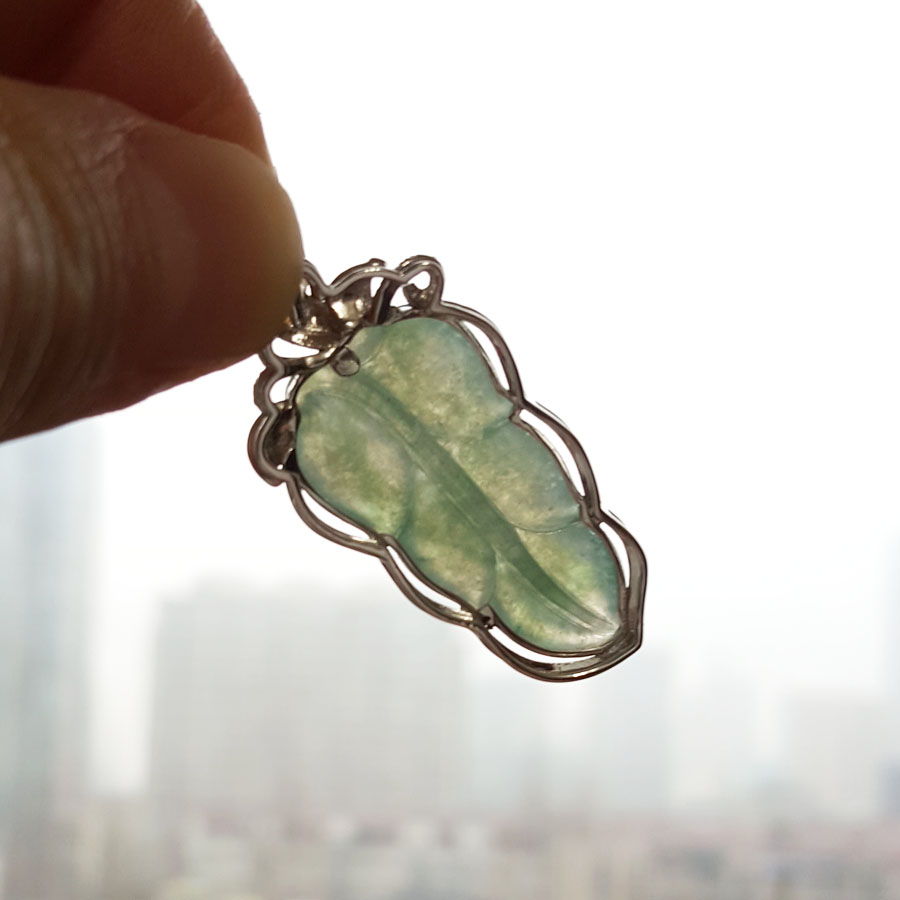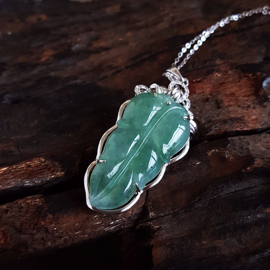 名称 | AU750白金镶钻镶天然细腻冰种叶子(金枝玉叶)翡翠吊坠项链 |
