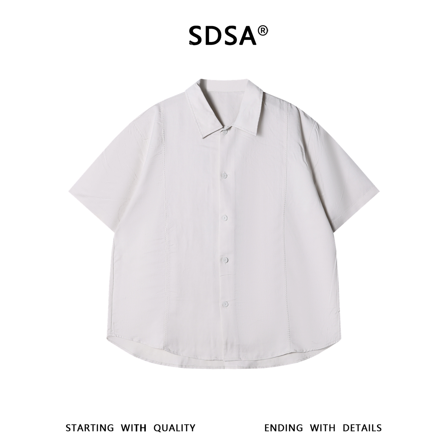 SDSA男装2026新款高贵轻奢日系纯色明线翻领短袖衬衫百搭宽松上衣