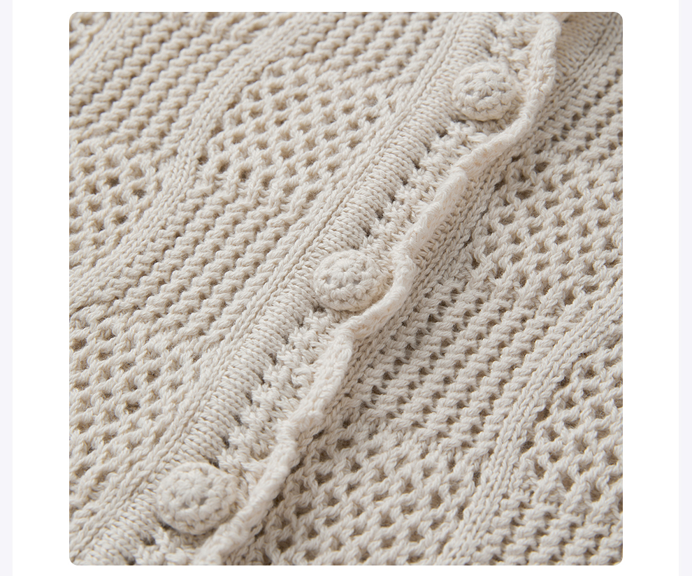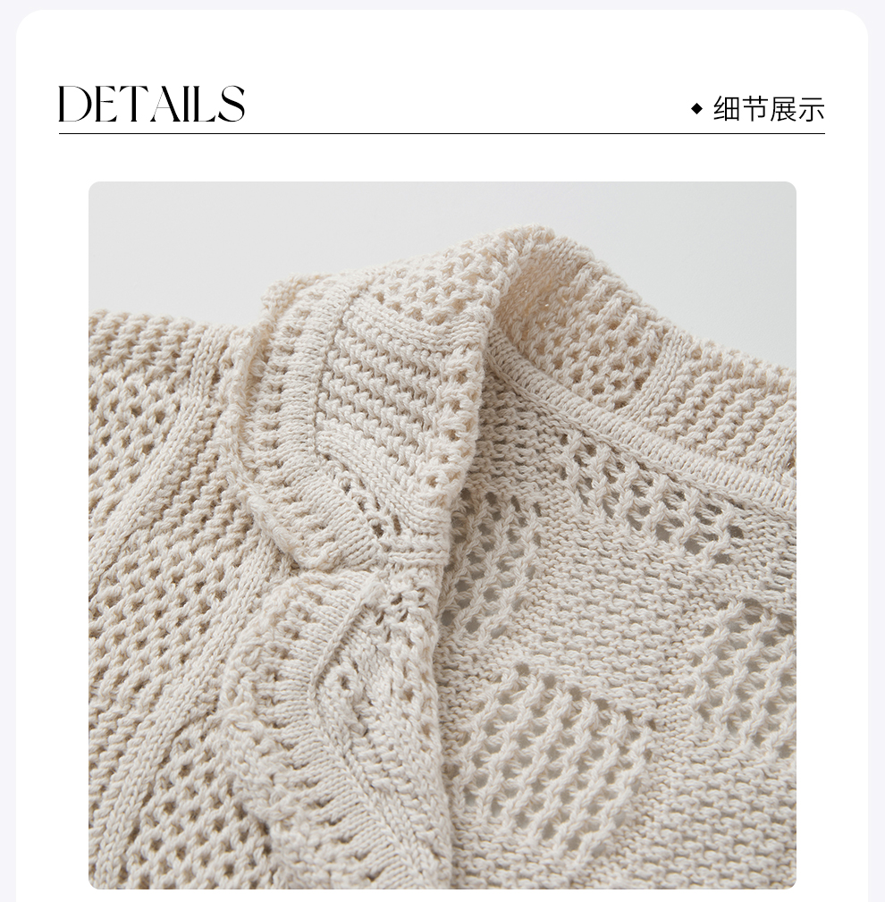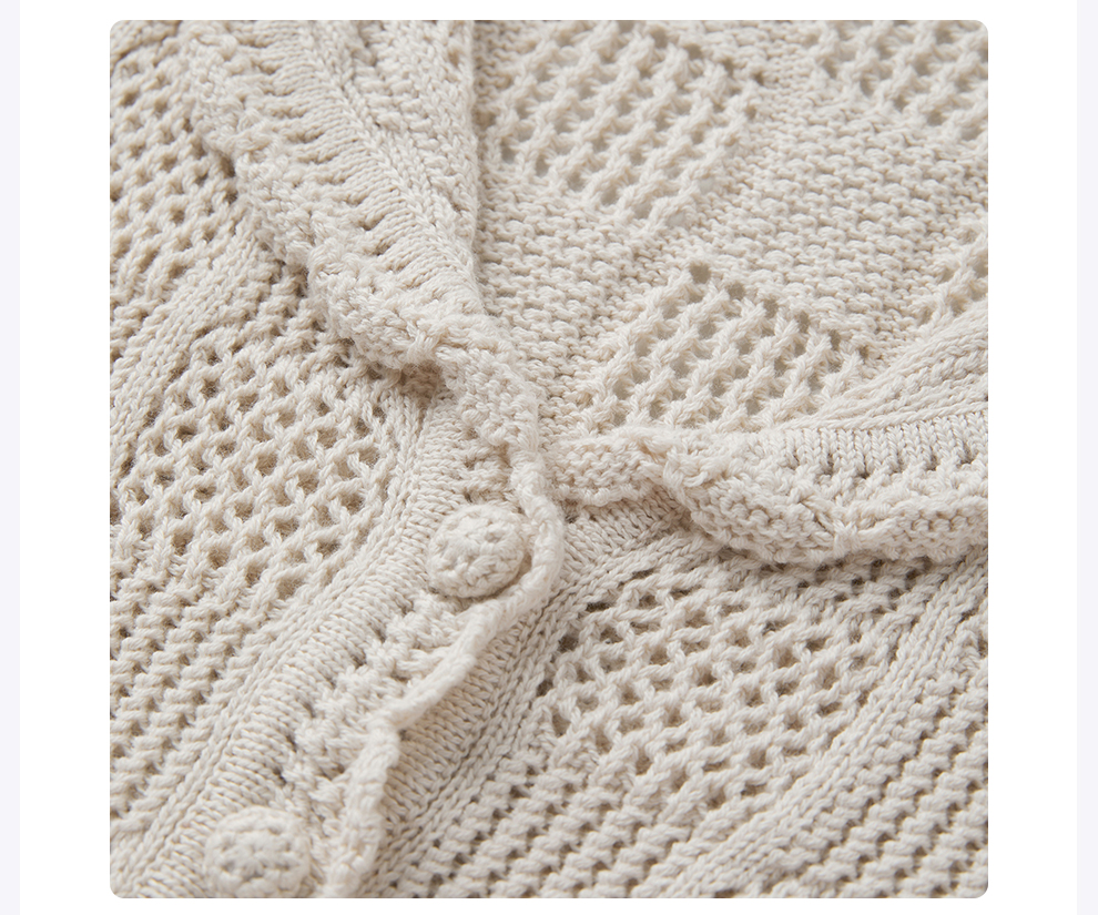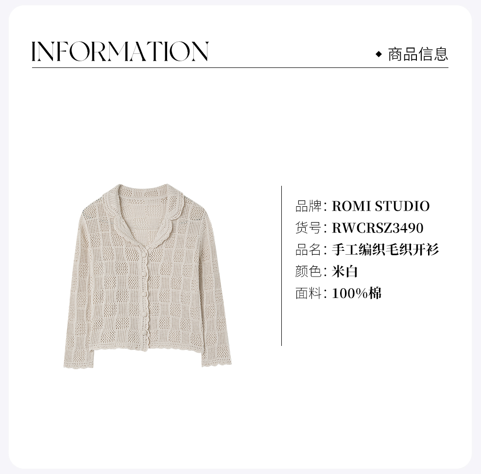 ROMI STUDIO“法式复古”手工钩织镂空棉质短款针织开衫 RWCRSZ3490