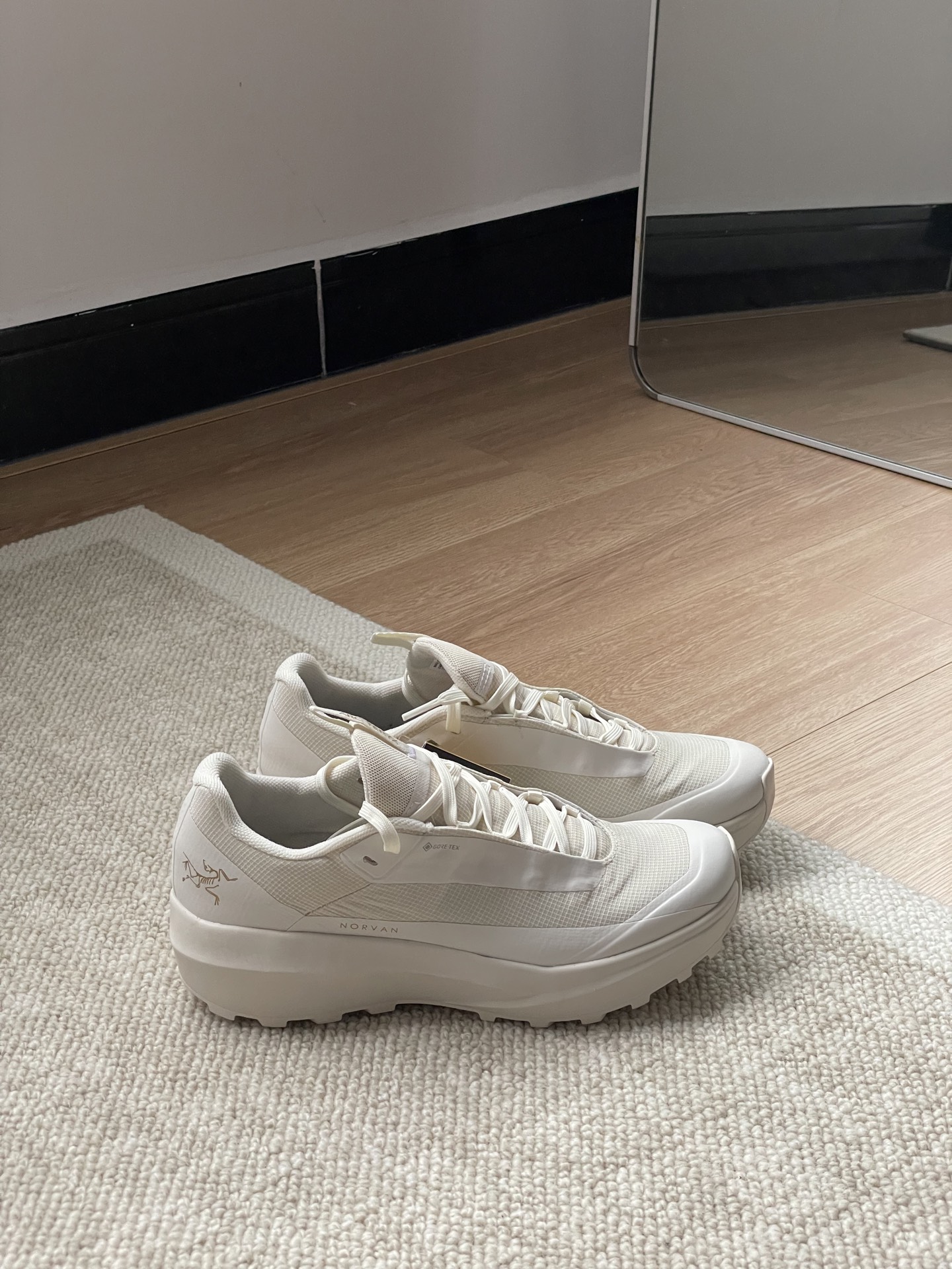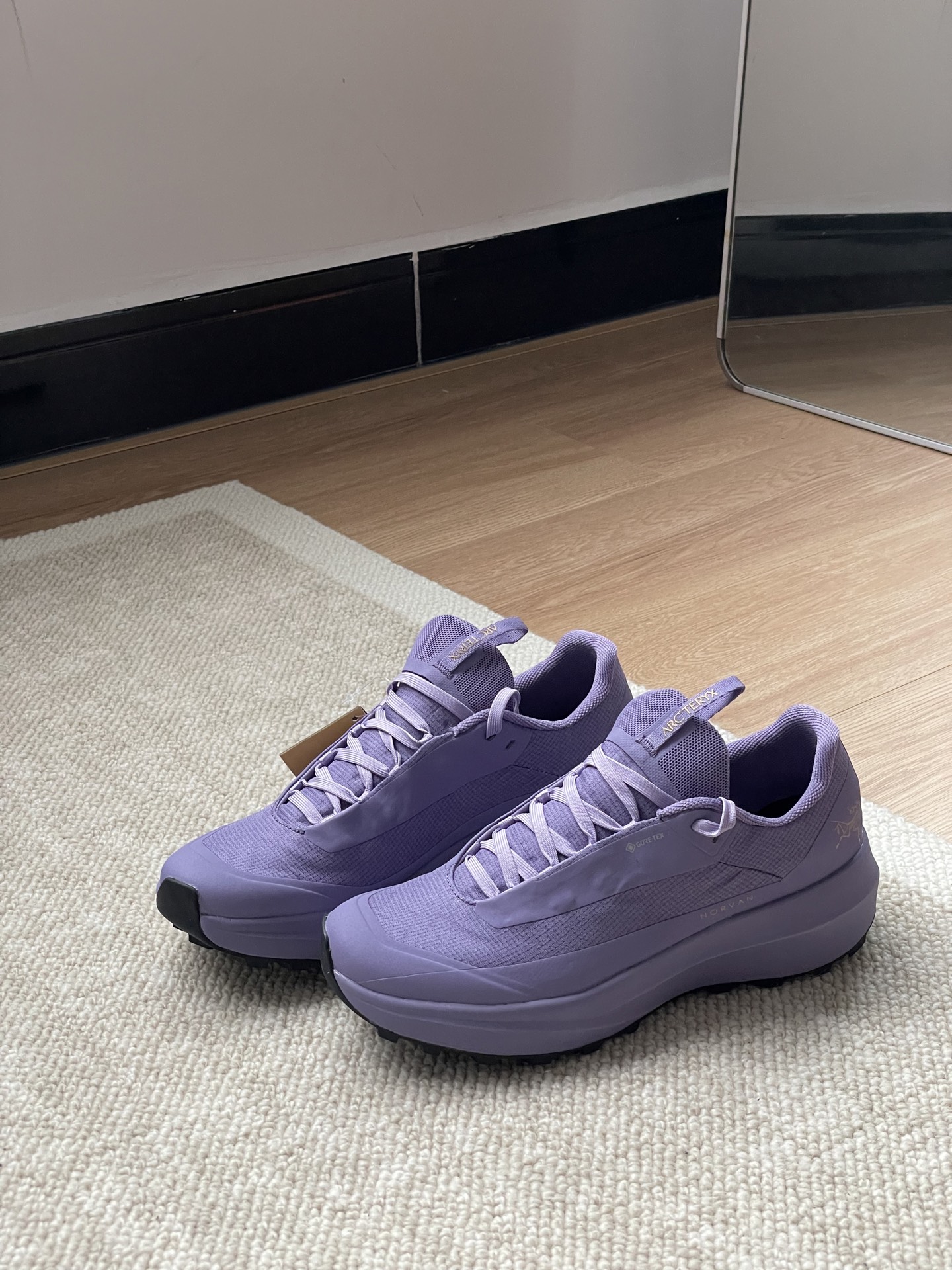 莞产,用的原厂的GTEX的面料,防水面料,这种科技面料是目前外面是做不出来的。所以品质真的闭眼入!情侣款,运动鞋码! NORVAN LD 4 GORE-TEX 防水 越野跑鞋!这款四季皆宜的防水鞋专为适应长时间训练和探险跑而设计,适合泥泞地面、盘根错节的环境和碎石路面,让你无惧天气变化。宽阔的前足和稳固的中足支撑带来舒适、稳固的穿着体验,能够抖落泥土的凸耳设计让你在任何地形上都能稳抓地面、疾速前进,耐久的鞋面和Vibram® Megagrip大底能够应对崎岖的碎石路线和湿滑山径。 码数:女码36,36.5,37,38,38.5,39。 男码39,40,40.5,41,42,42.5,43,44,44.5,45。⚠️下单39码备注男女段⚠️ 紫色只有女码36一39 灰色只有男码39—45
