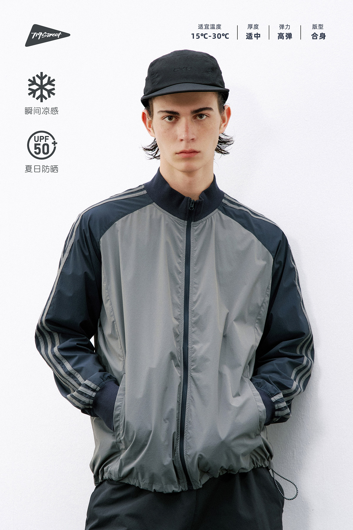 714street美式复古条纹撞色夹克2026春季凉感防晒情侣运动外套男