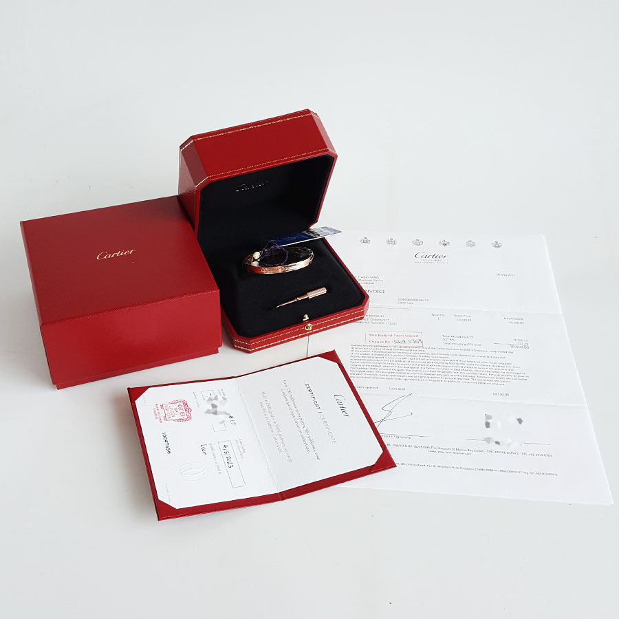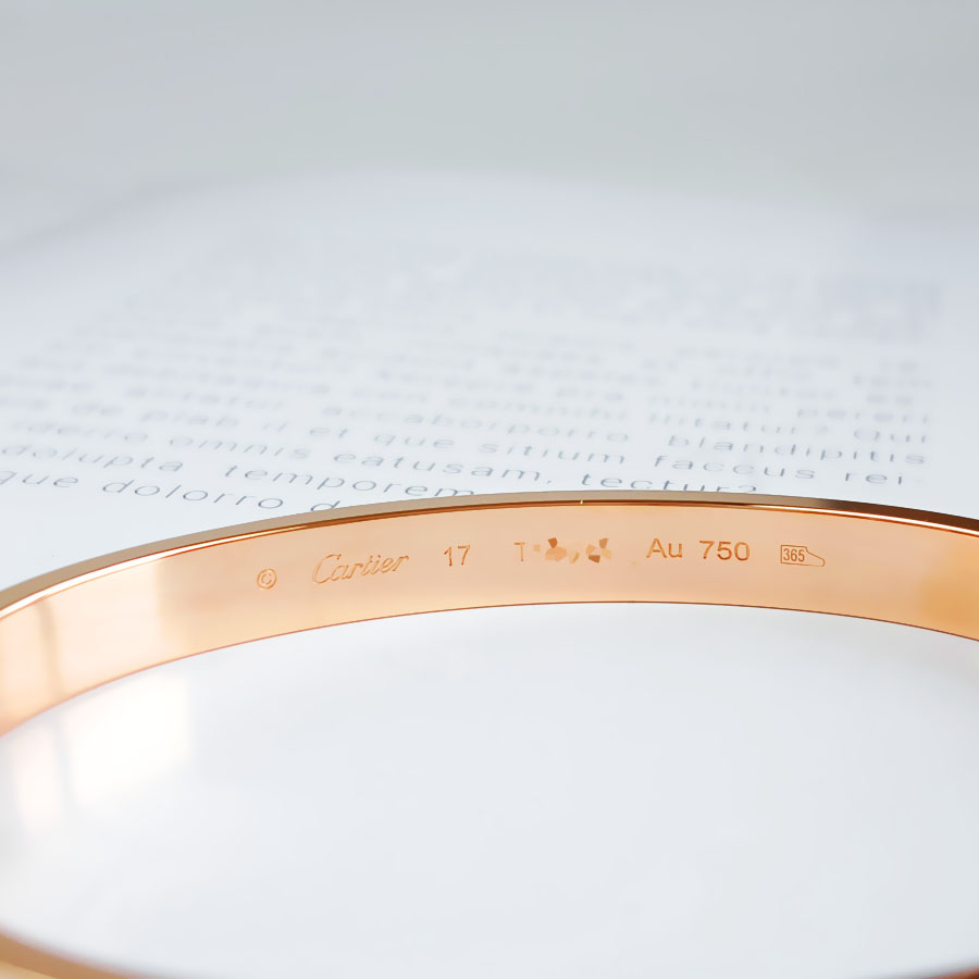 【95新】Cartier卡地亚LOVE系列18K玫瑰金宽版无钻Love五代手镯17号中性款现售价:34000!180425NJS03