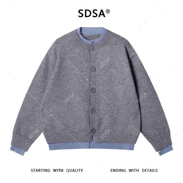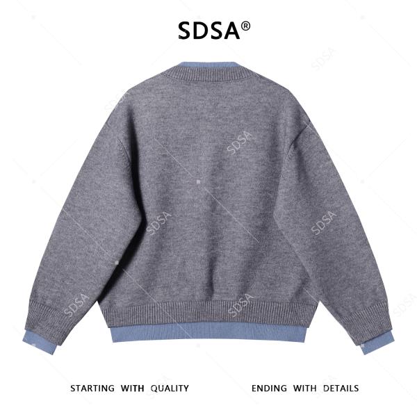 72111SDSA男士秋冬新款痞帅男装极简风撞色拼接假两件毛衣开衫针织衫