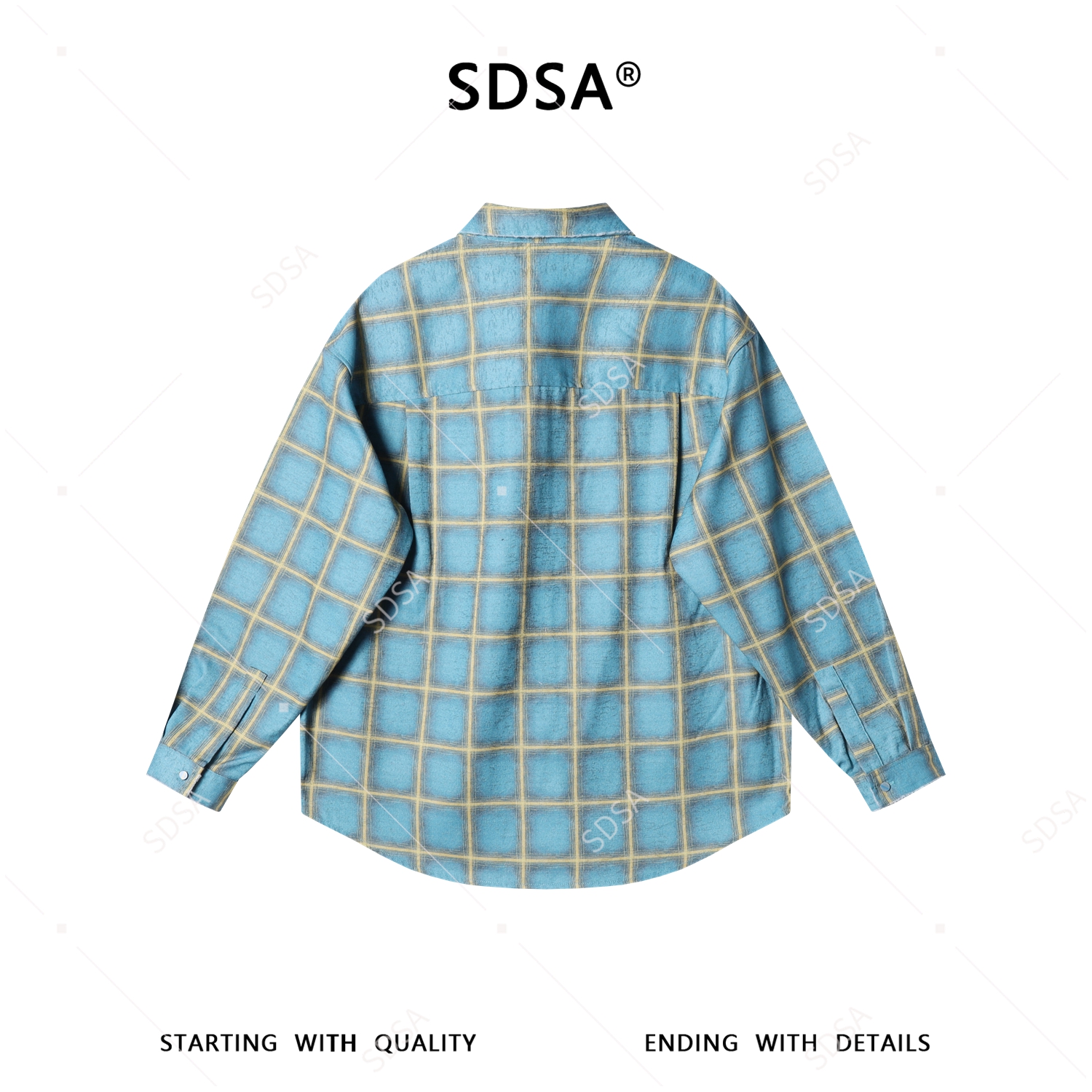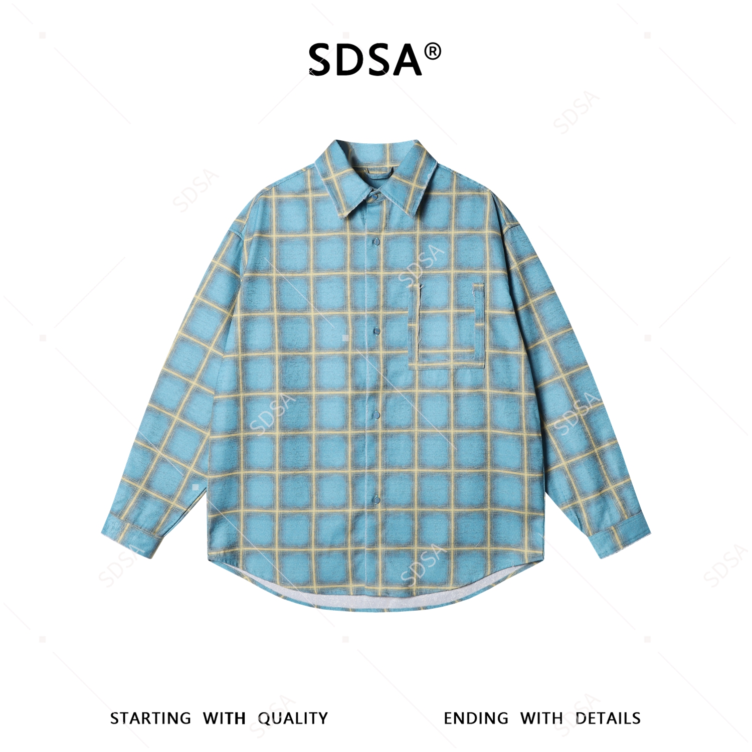 SDSA男装2026新款高贵轻奢韩版休闲撞色格纹格子长袖衬衫百搭休闲