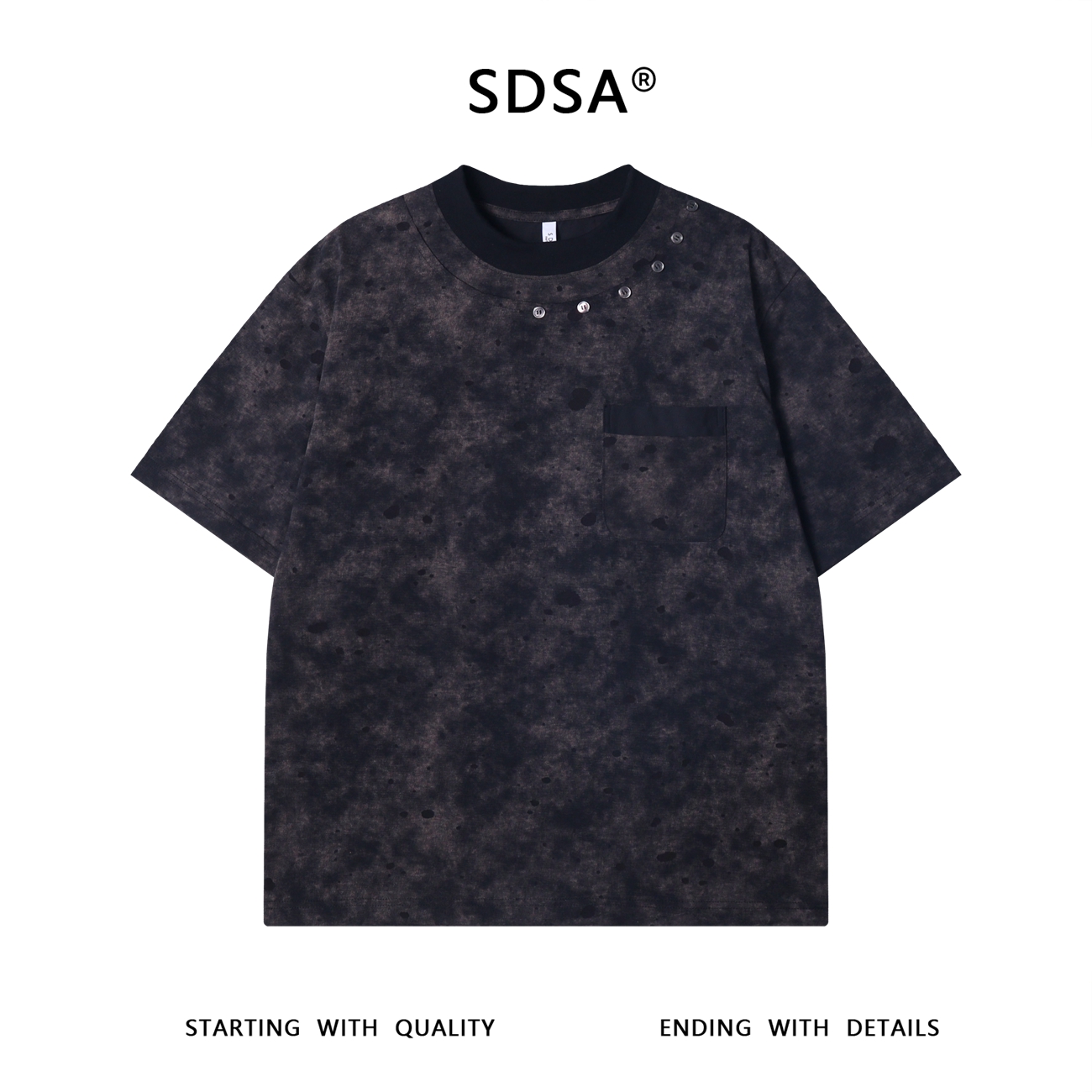 T3317夏季高级感新款口袋拼接裁剪短袖T恤领口纽扣设计百搭宽松上衣