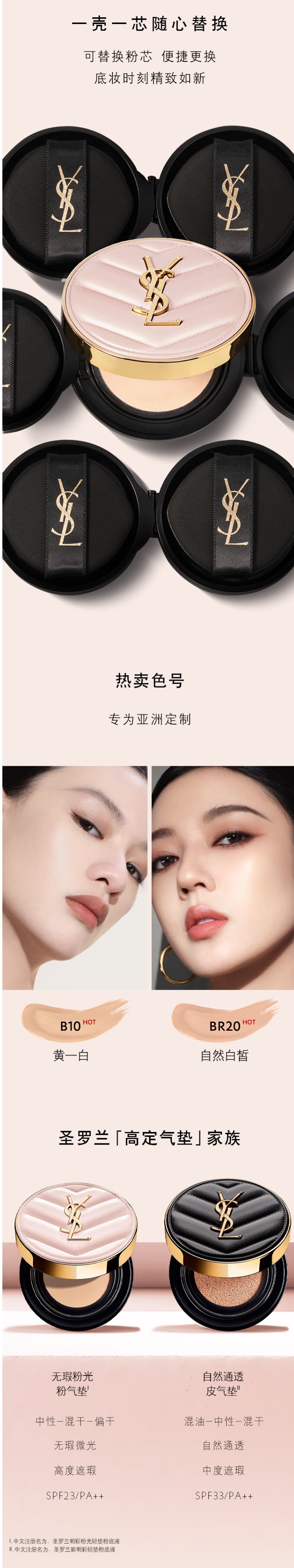 圣罗兰明彩轻垫粉底液 B10/BR20粉气垫替换芯 SPF23/PA++