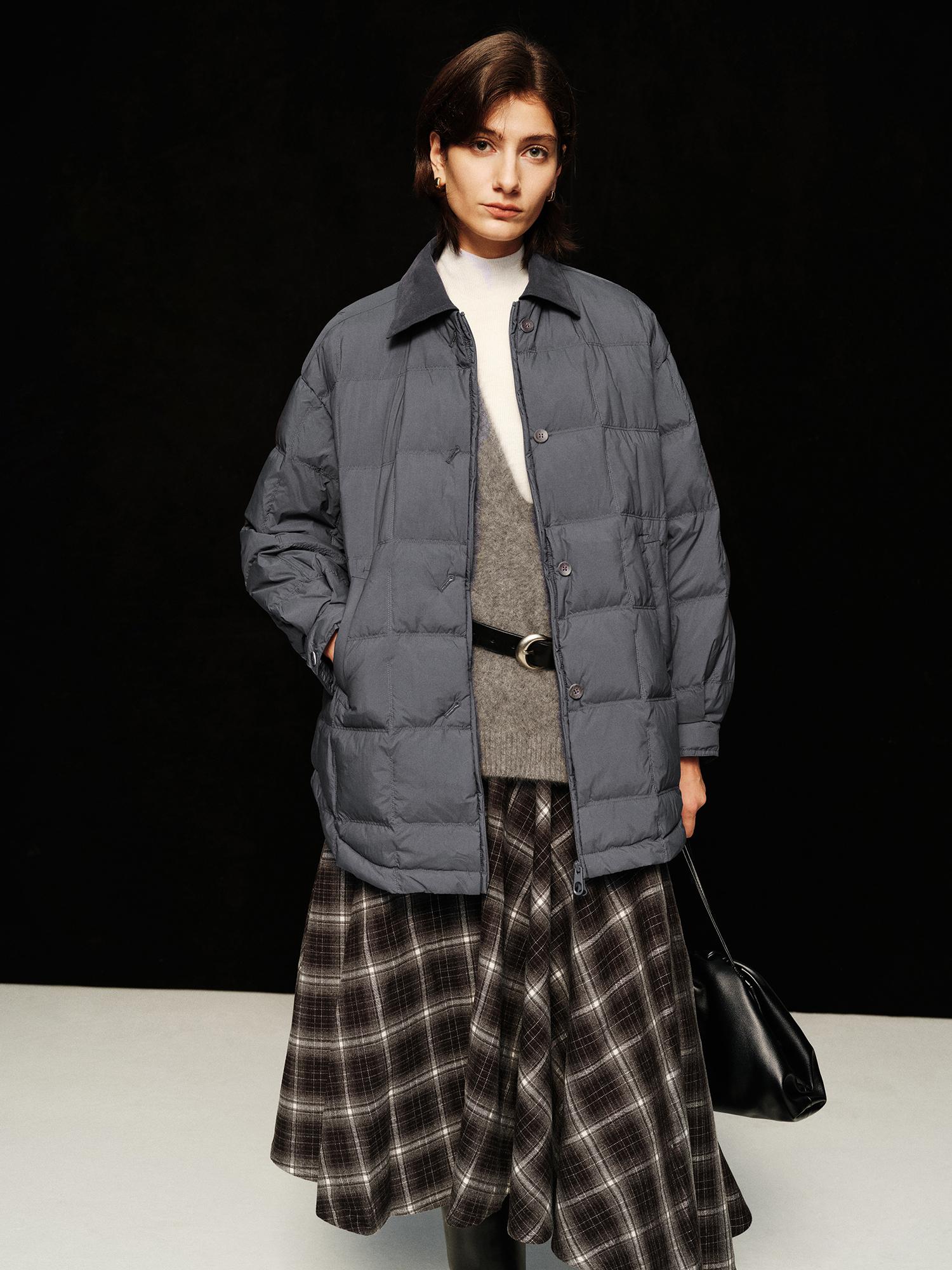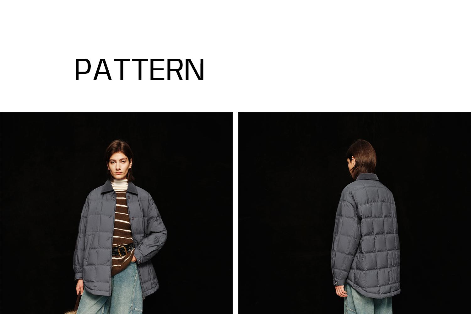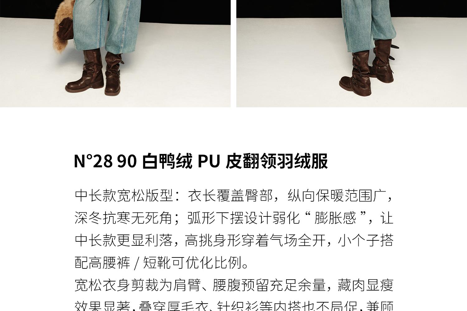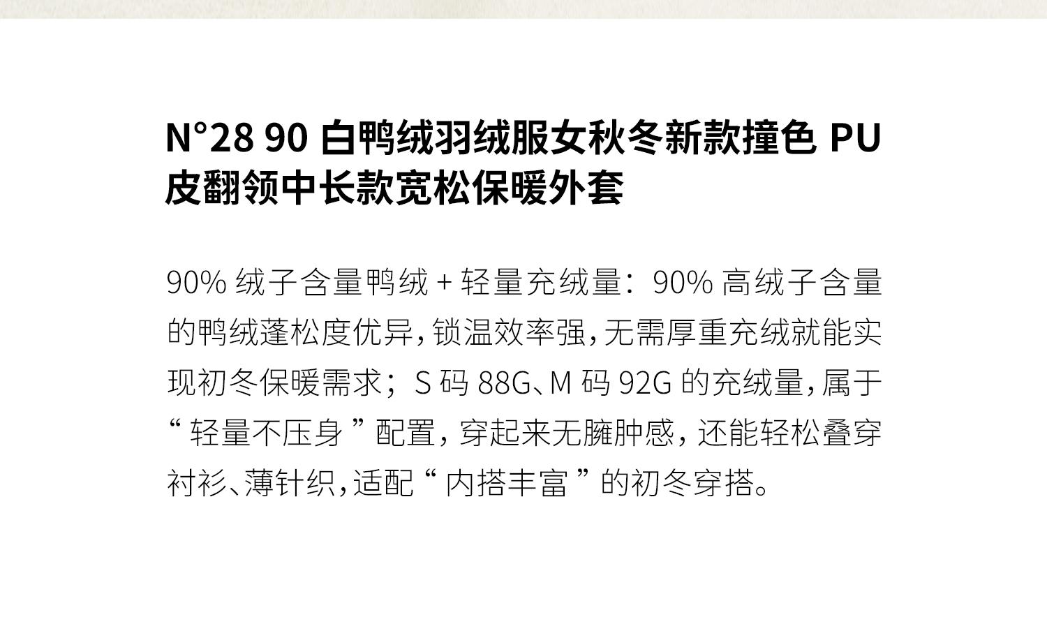 N°28 90白鸭绒羽绒服女秋冬新款撞色pu皮翻领中长款宽松保暖外套8955A1R105