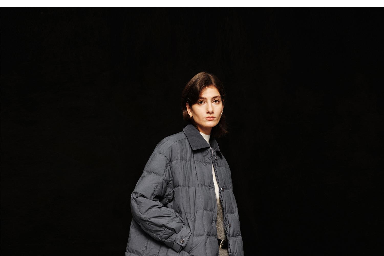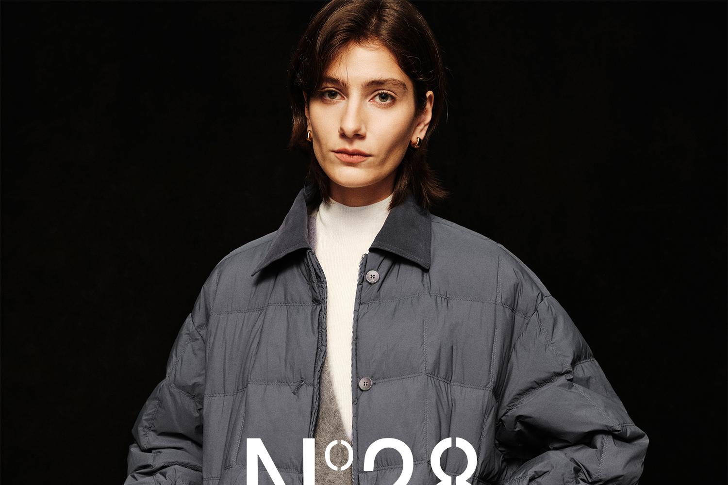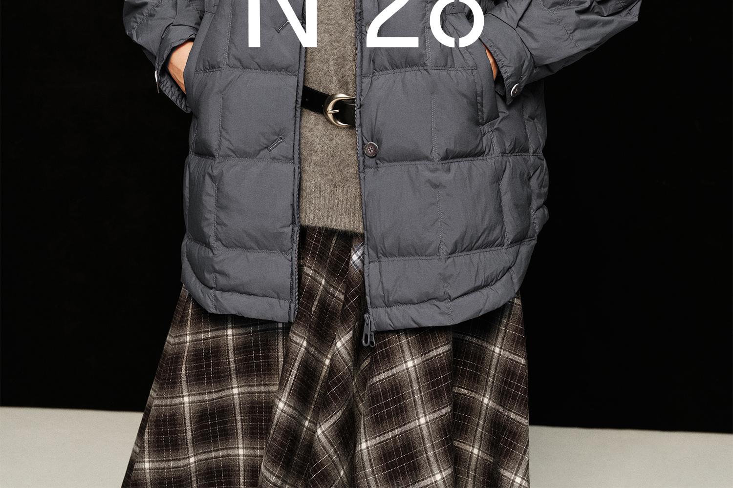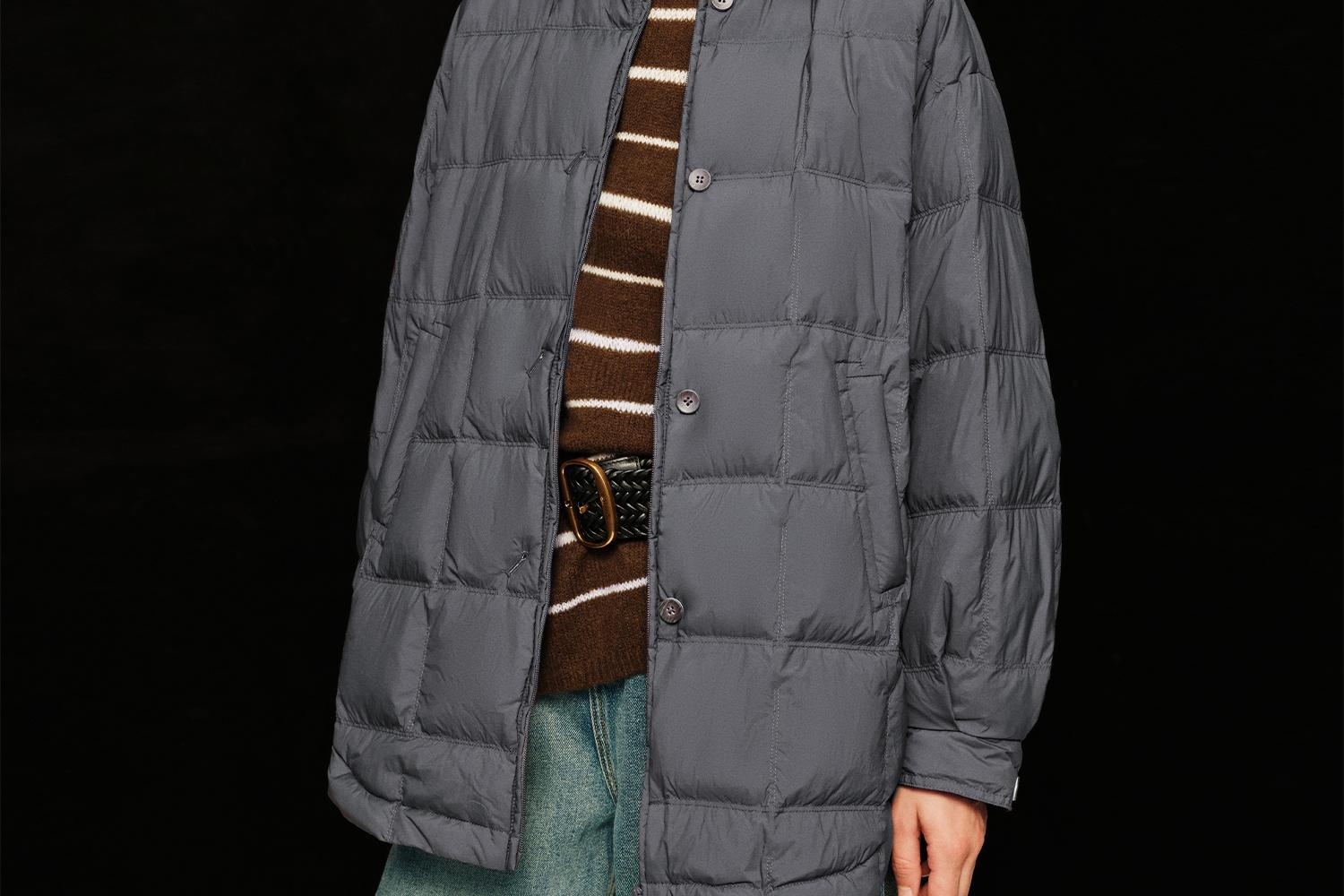 N°28 90白鸭绒羽绒服女秋冬新款撞色pu皮翻领中长款宽松保暖外套8955A1R105