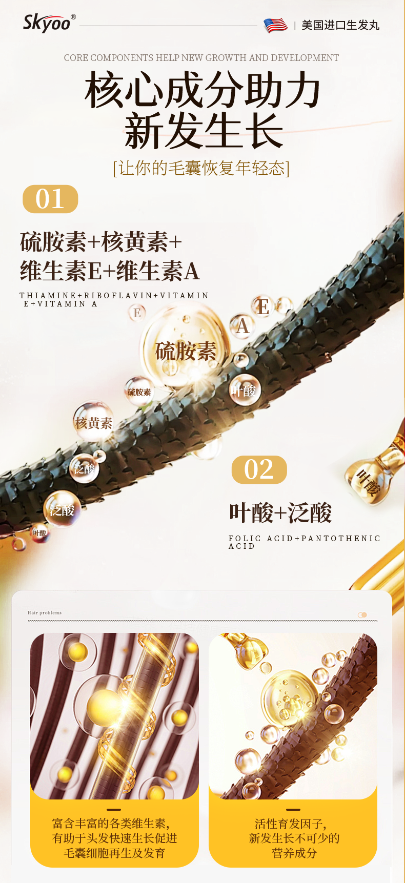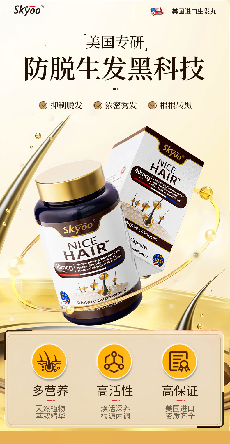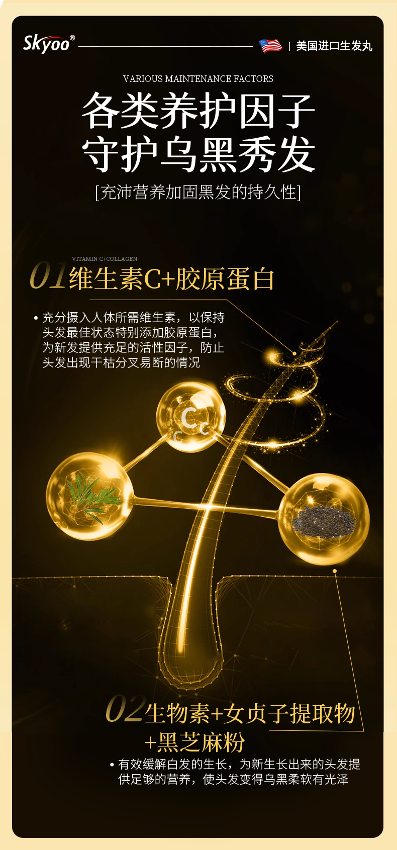 Skyoo美国进口高端科技生物素防脱发护黑复合片维生素B族男女通用【3瓶装】