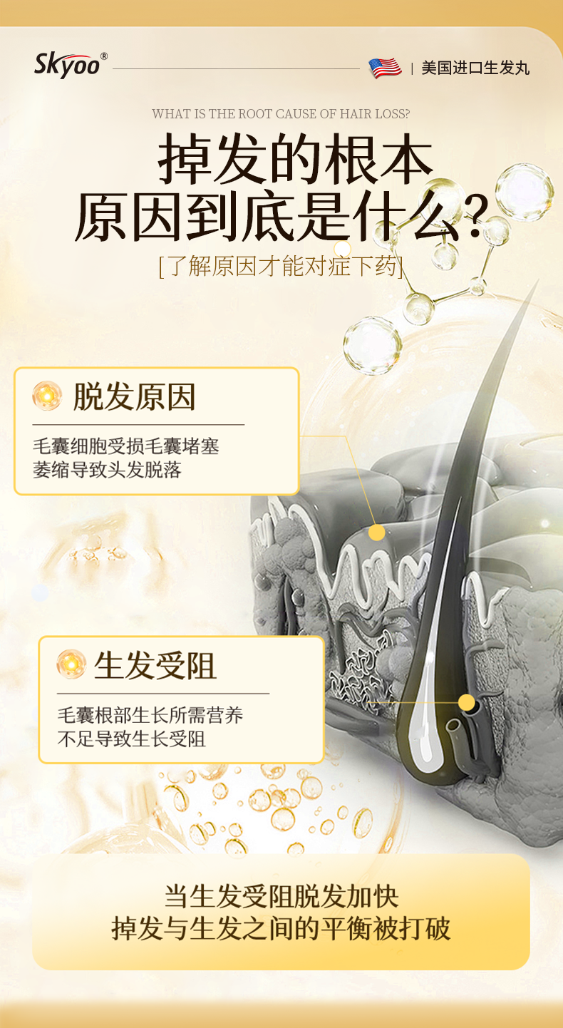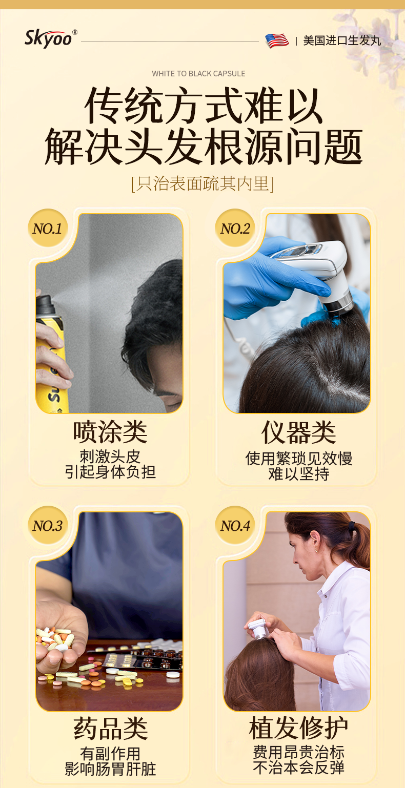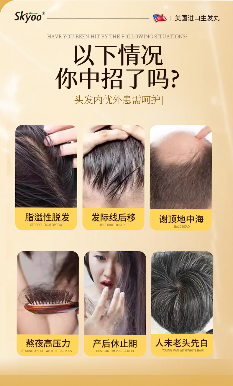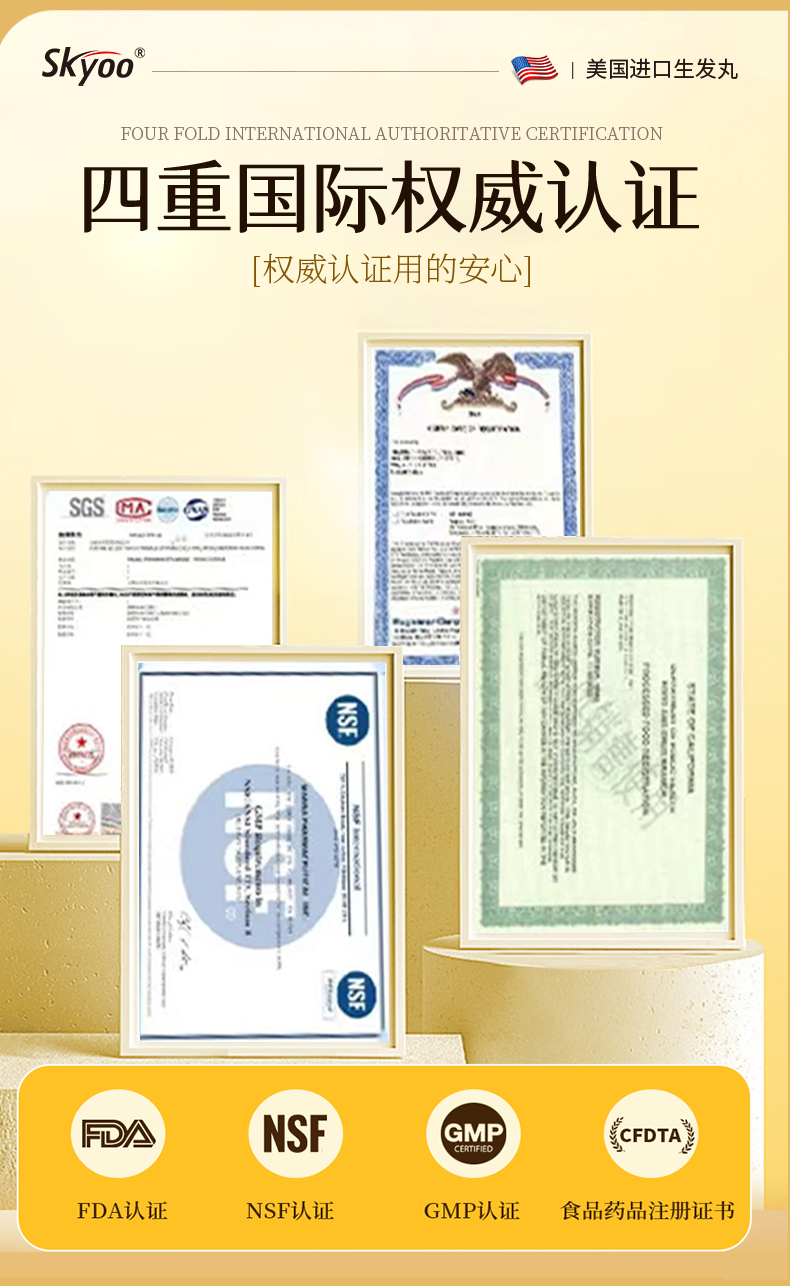 Skyoo美国进口高端科技生物素防脱发护黑复合片维生素B族男女通用【3瓶装】