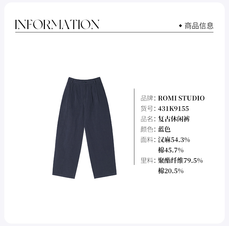 ROMI STUDIO“汉麻甄选”汉麻棉混纺麻结肌理感直筒休闲裤 431K9155