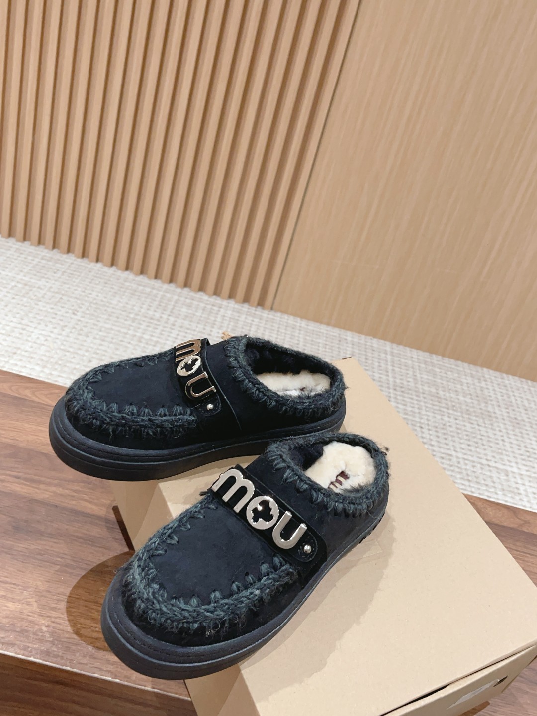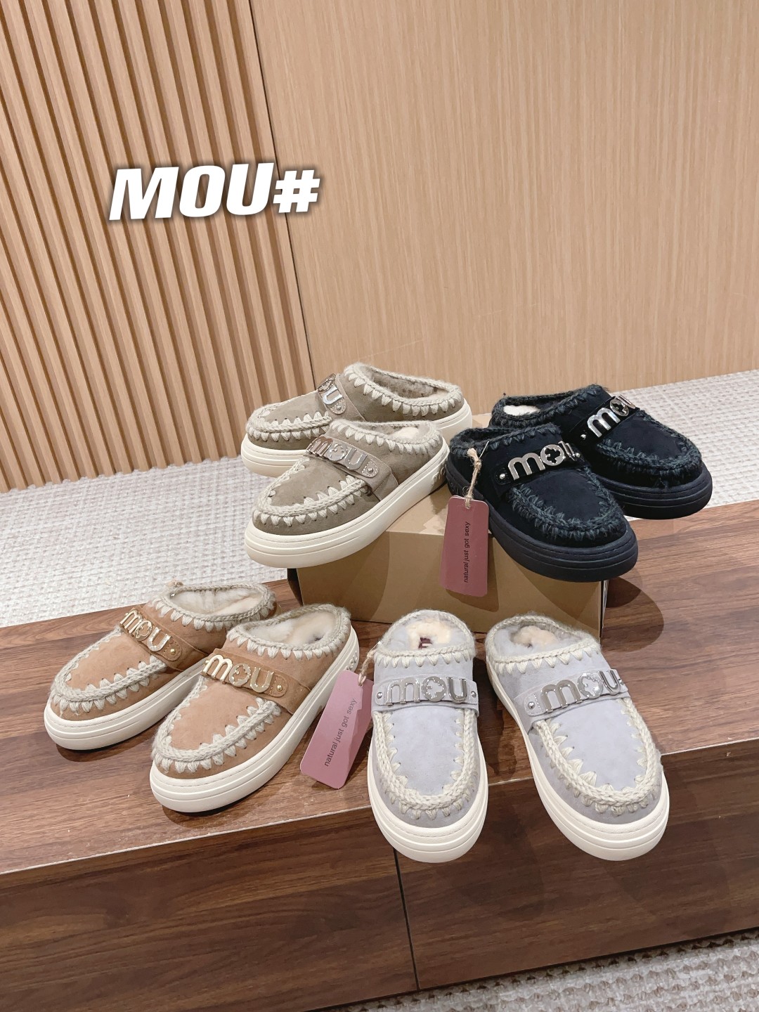 MOU 2023秋冬新品毛拖 麂皮鞋棉
