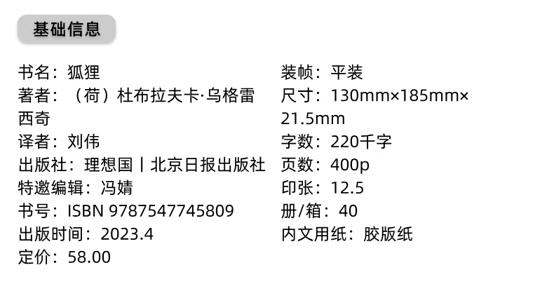 狐狸(荷)杜布拉夫卡·乌格雷西奇 著