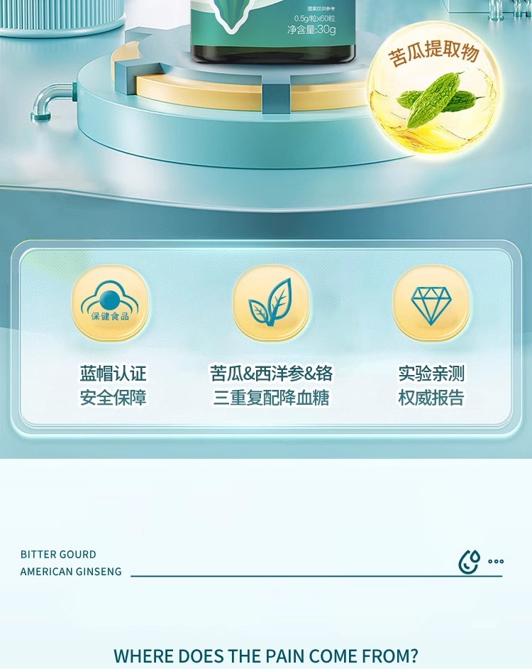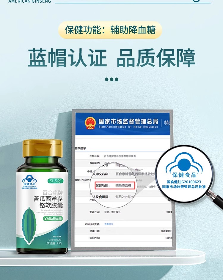 susr平衡片苦瓜西洋参铬软胶囊苦瓜软囊辅助降血糖桑叶高血糖SUSR
