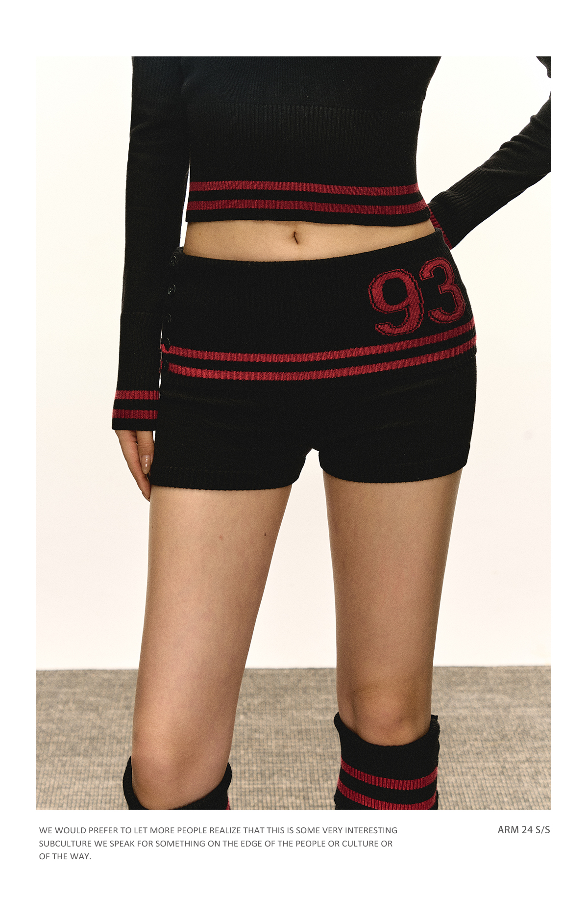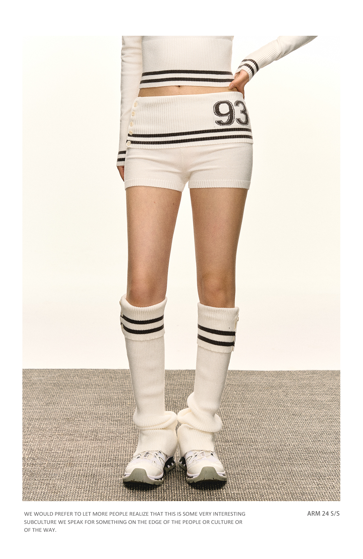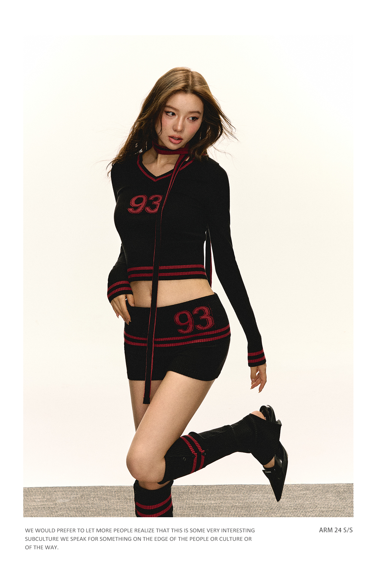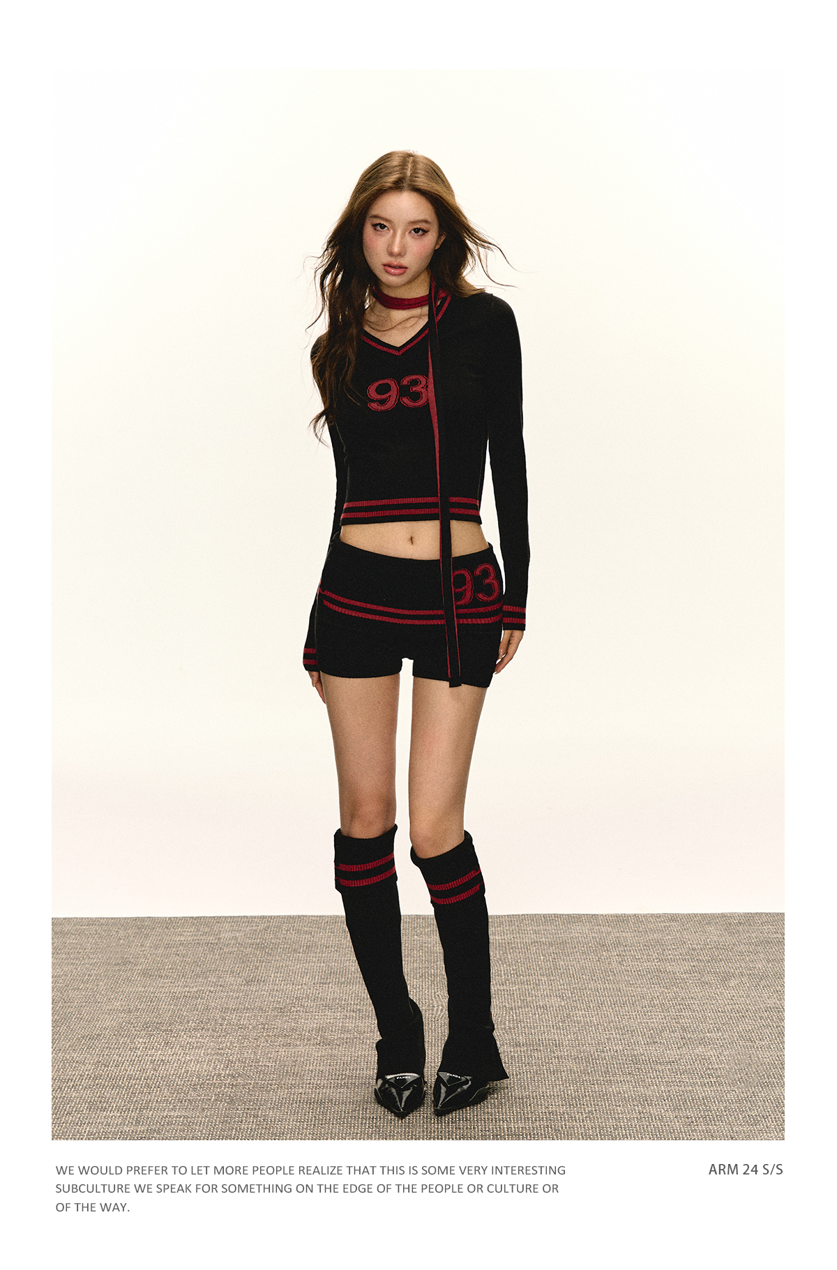 Ariseism 美式复古紧身V领短款针织衫短裤女四件套套装女春季新款