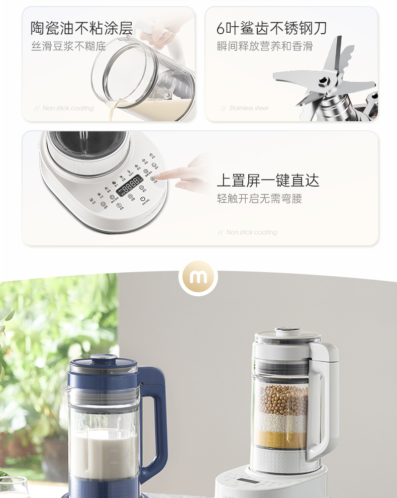 摩飞柔音破壁机全自动婴儿米糊机豆浆机多功能榨汁机MR8202