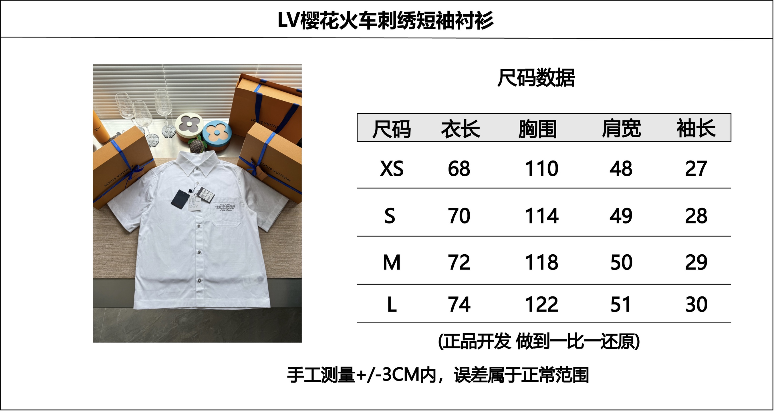 Louis Vuitton25ss樱花火车刺绣短袖衬衫‼️整件衣服9150购买ZP拆解打造,采用定制白色棉质面料,做到100%全棉进口纱线,意大利制造,胸前贴袋饰以LV刺绣字母标识设计,后幅饰以LV图案刺绣字母标识,门襟开模定制LV字母标识珠光纽扣 配有五金底座,真正做到1:1copy 码数:XS S M L