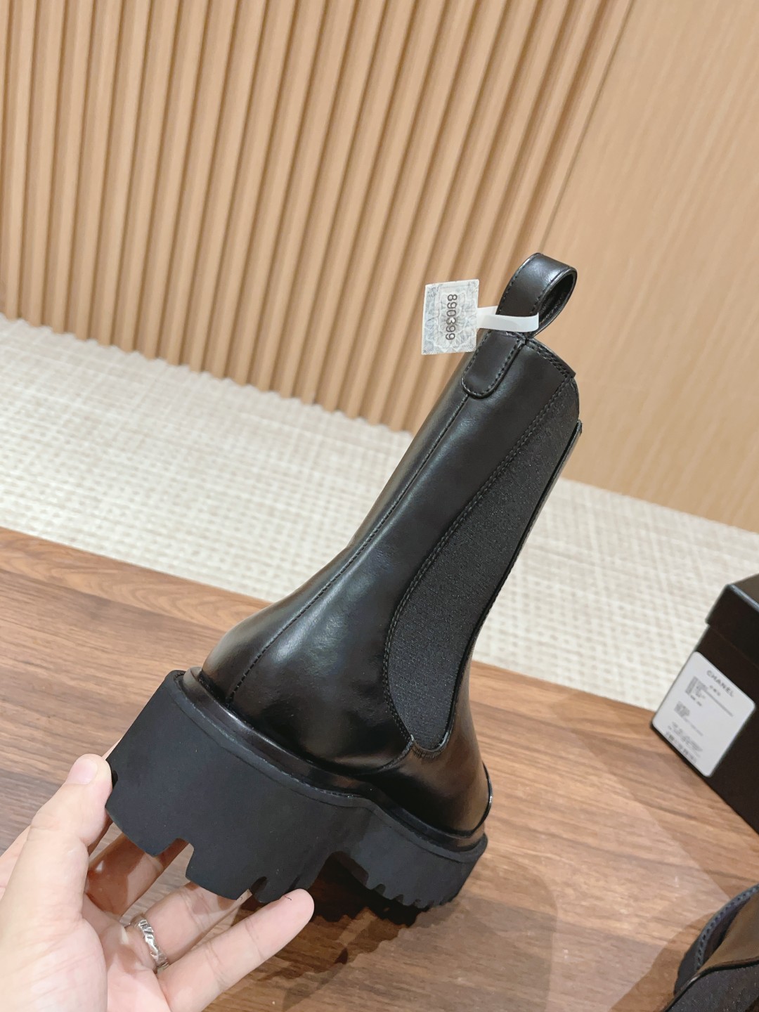 【莞产】CHAN*L 小香秋冬新款厚底一脚蹬短靴