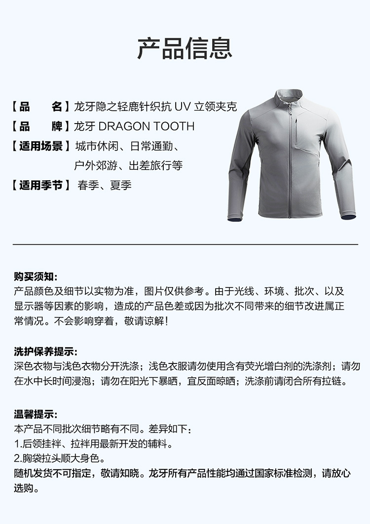 隐之轻鹿针织抗UV立领夹克外套男夏季款外套男士防晒衣外套