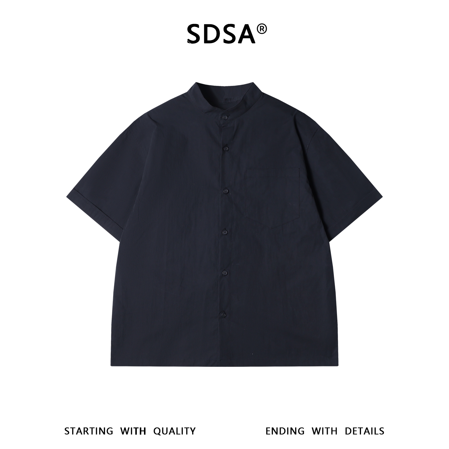 56019SDSA男装2026新款高贵轻奢潮牌简约纯色立领短袖衬衫百搭时尚衬衣