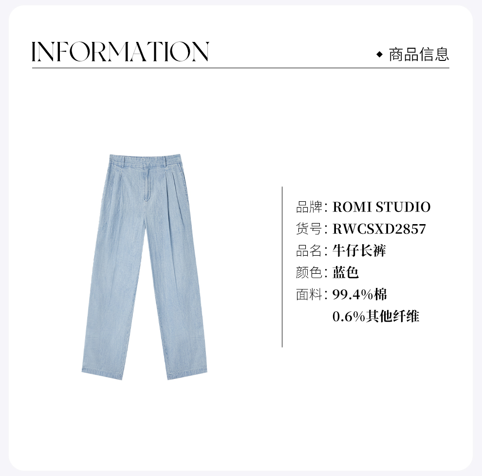 ROMI STUDIO 简约复古环保洗水 棉质浅蓝直筒牛仔裤 RWCSXD2857